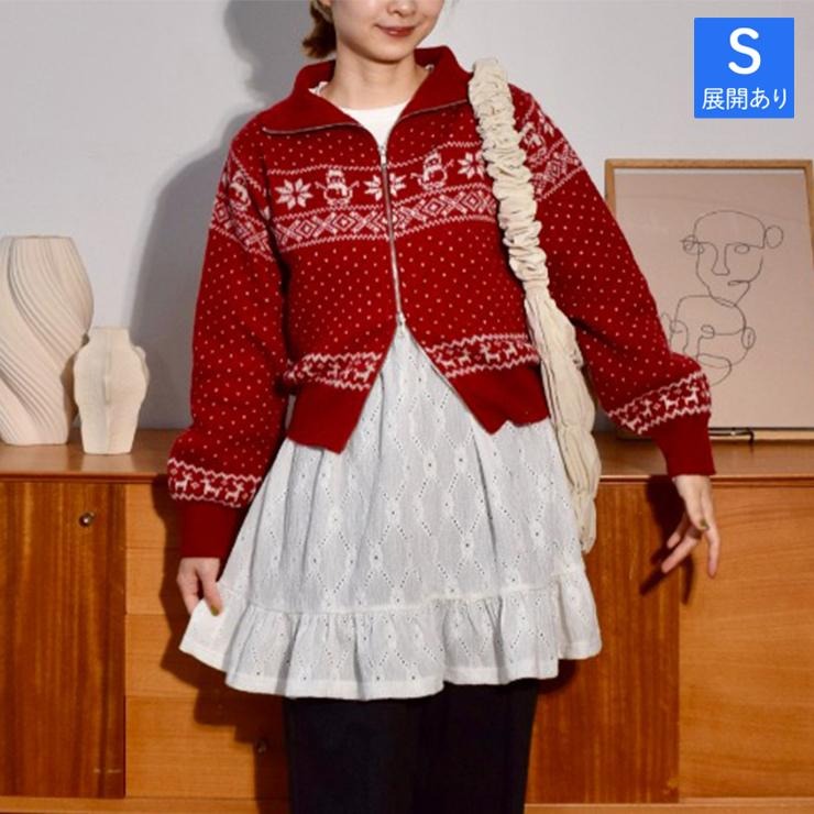 レディース ノルディック柄Wジップニットカーディガン(ちょこび) レッド 201 レッド 201