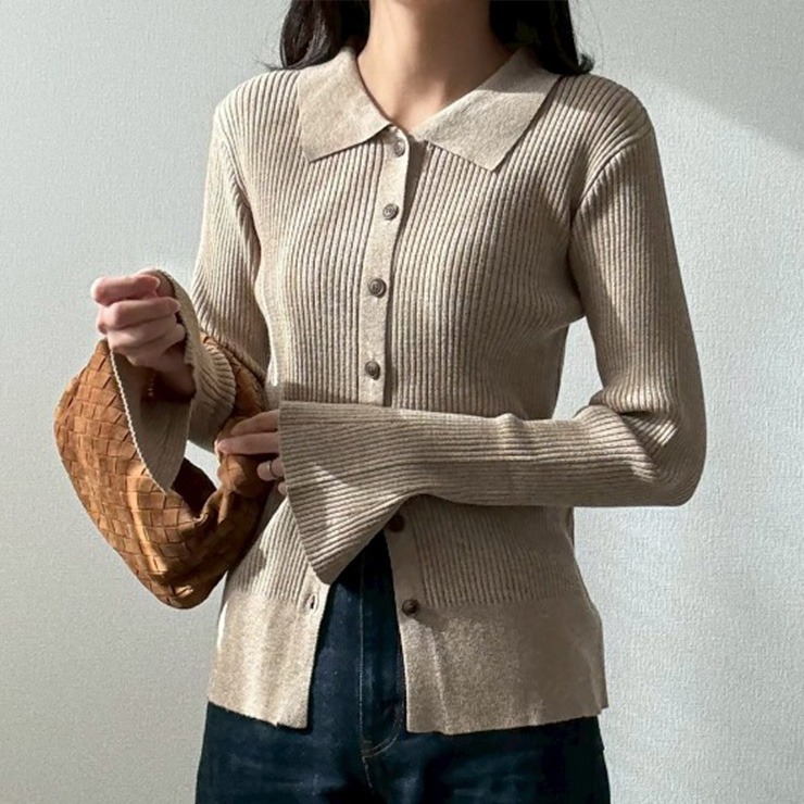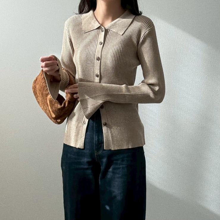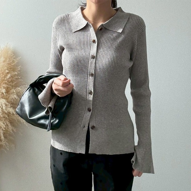 インフルエンサー「misato」さんとのコラボアイテムです。トレンディな襟付カーディガン♪モチモチとした肌ざわりの良いニット生地で、伸縮性もあり着心地◎袖口がフレアデザインになっているのもポイント♪寒いうちはアウターのインナーとして、温かくなってきたらアウターとして幅広く着まわしやすいアイテムです。
