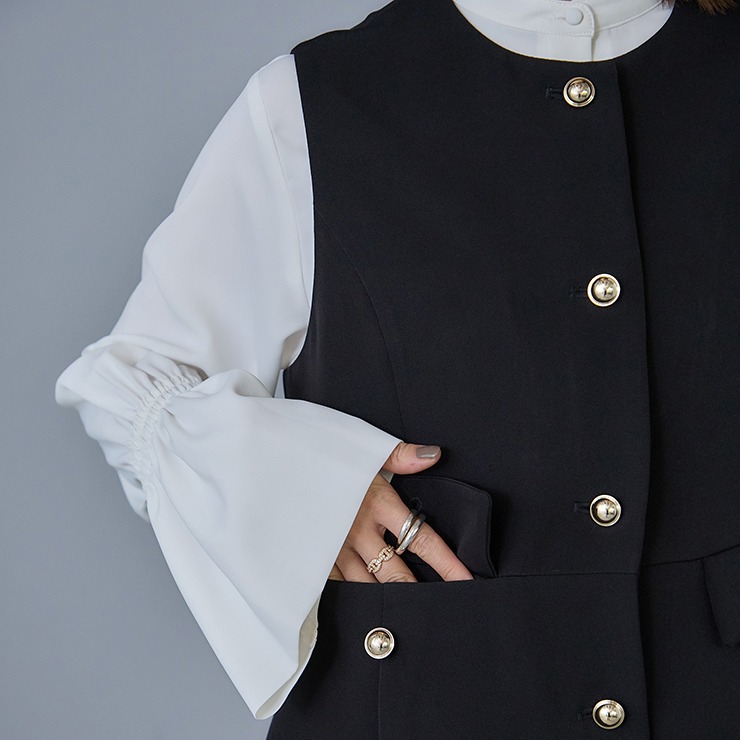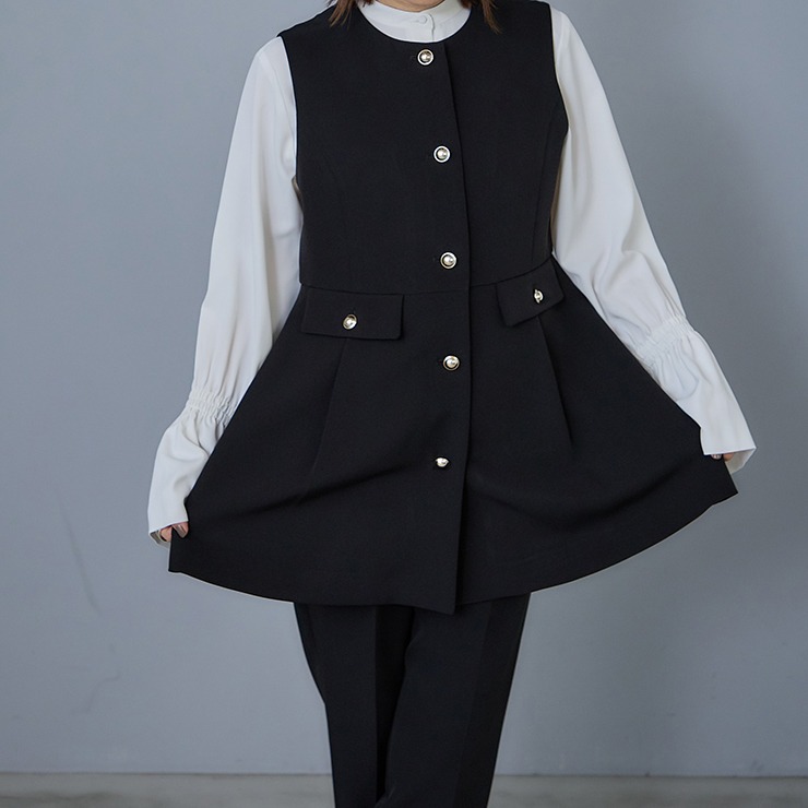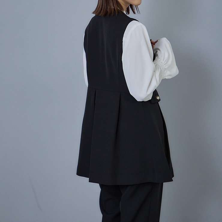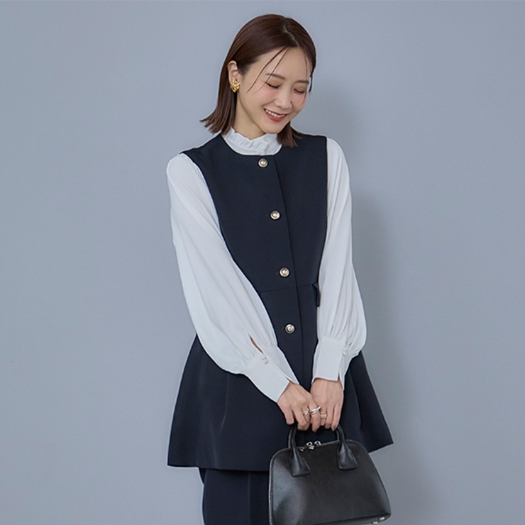 セレモニーシーンにも通勤にもカジュアルにも着用が出来るトレンドのベストです。