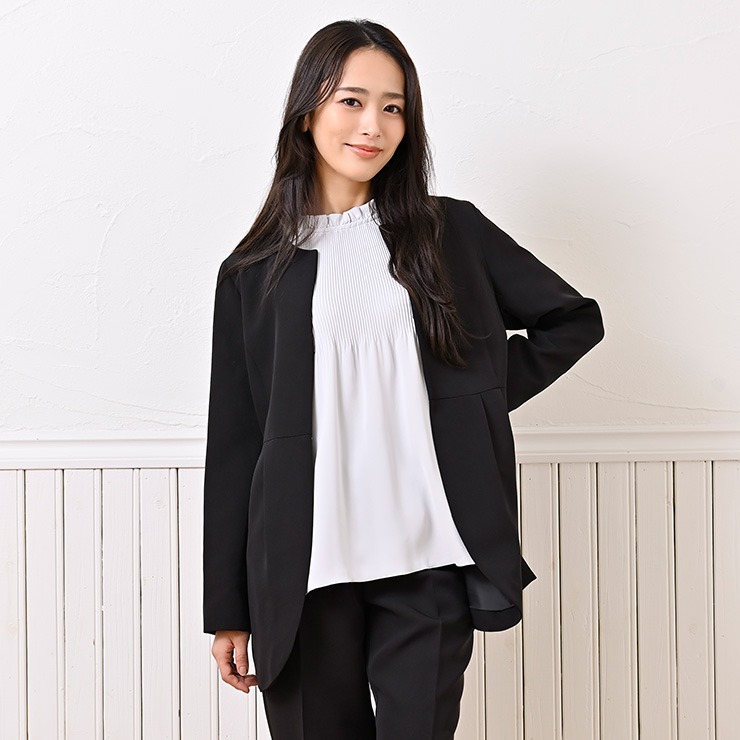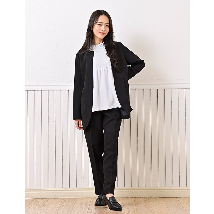 同素材のテーパードパンツとセットアップで着用でき、今どきのスーツスタイルが可能です。