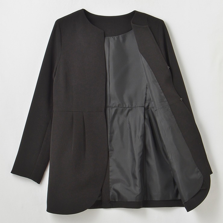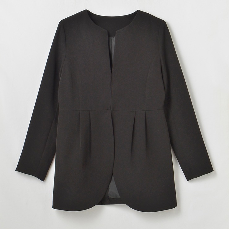 こなれ感のあるロング丈のノーカラージャケットです。