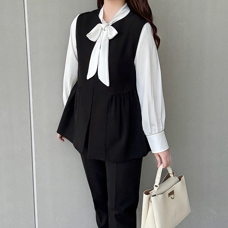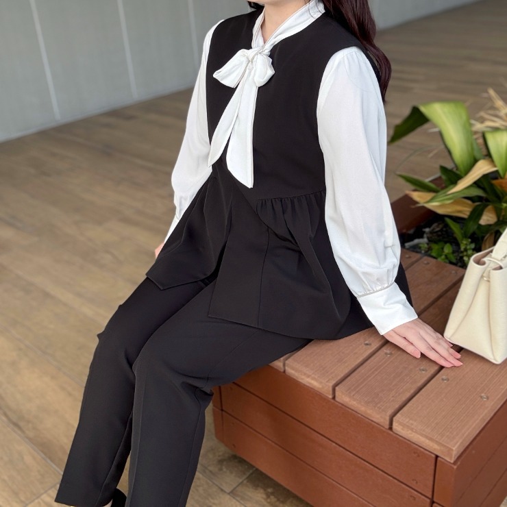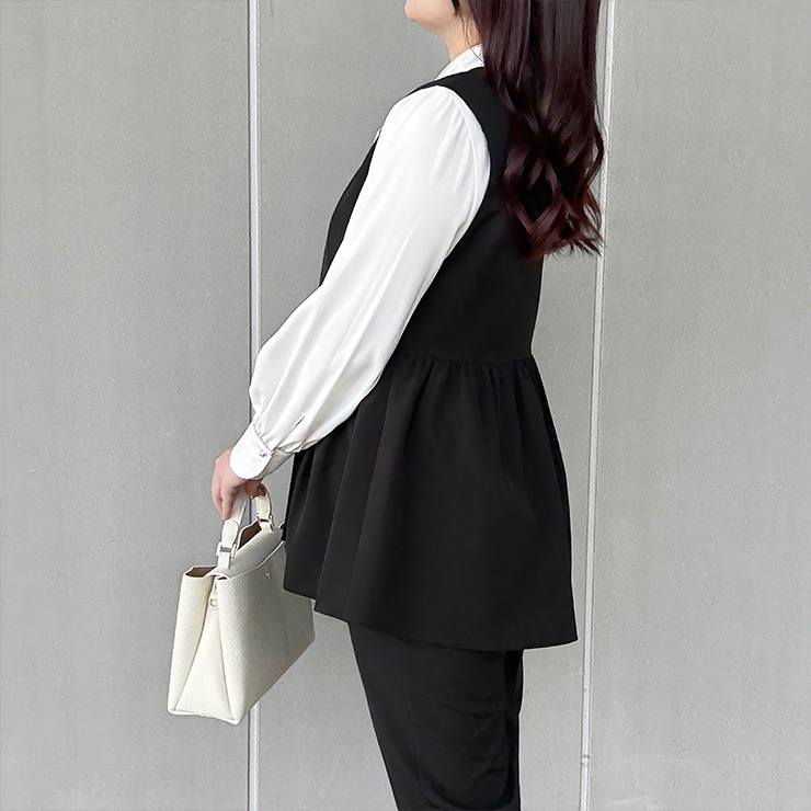 セレモニーにもデイリーにも使いやすいトレンドのジレです。