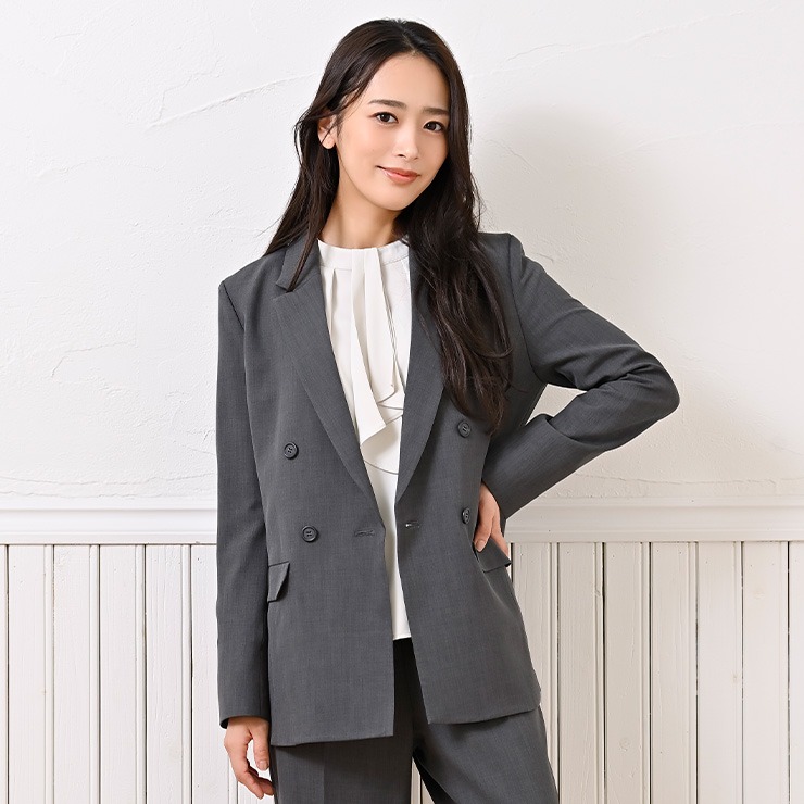 ダブルボタンで軽やかなトレンド感をプラスしつつ、テーラード仕立てできちんと見えも叶う万能ジャケット。