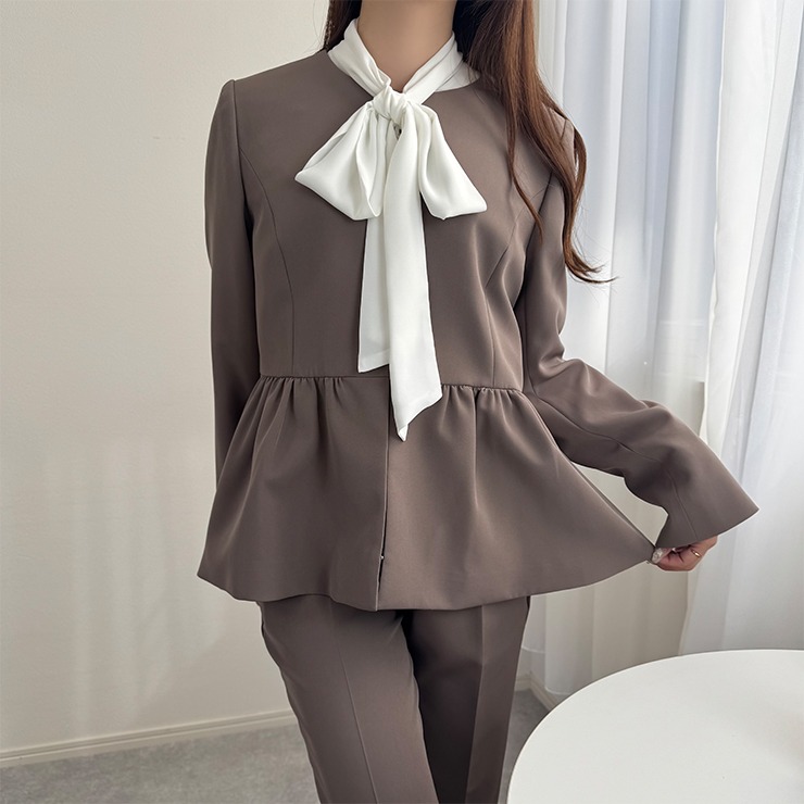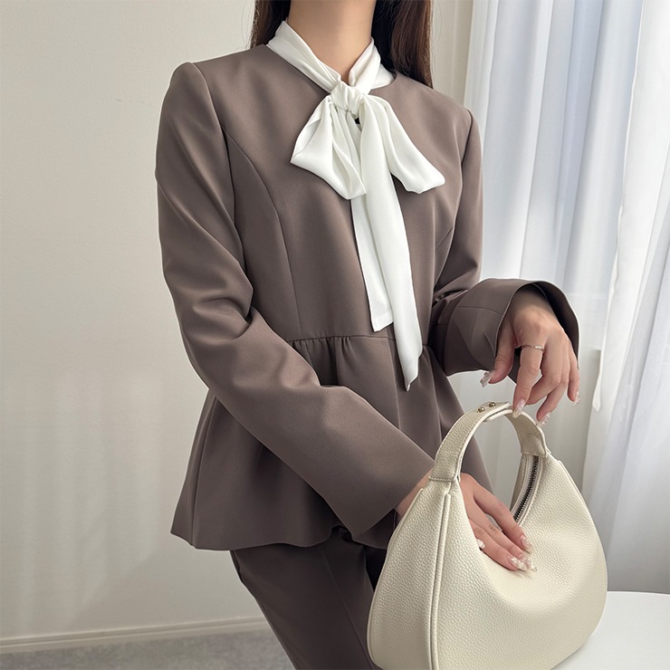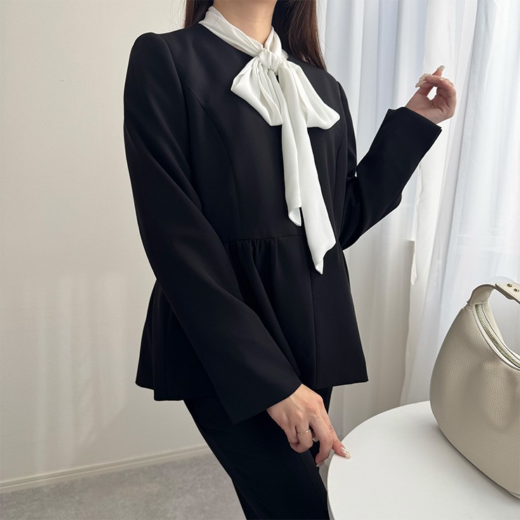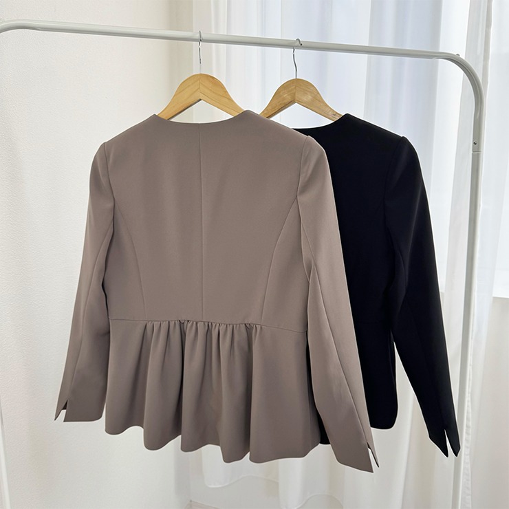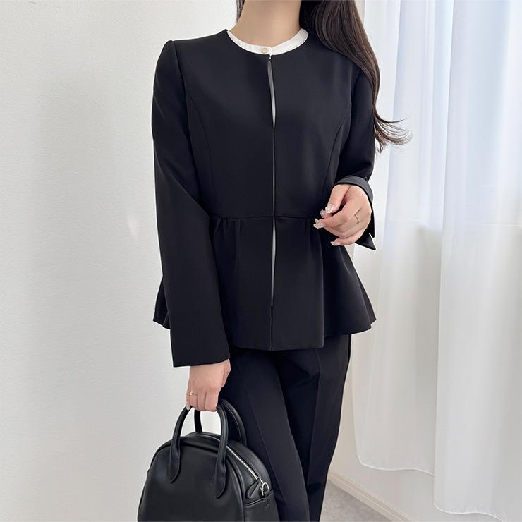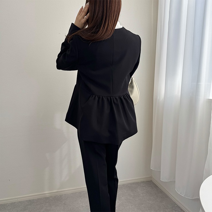 ペプラム部分は後ろ下りに設定していて、ヒップにかかる丈感でスタイルカバーできる点も嬉しいポイント。