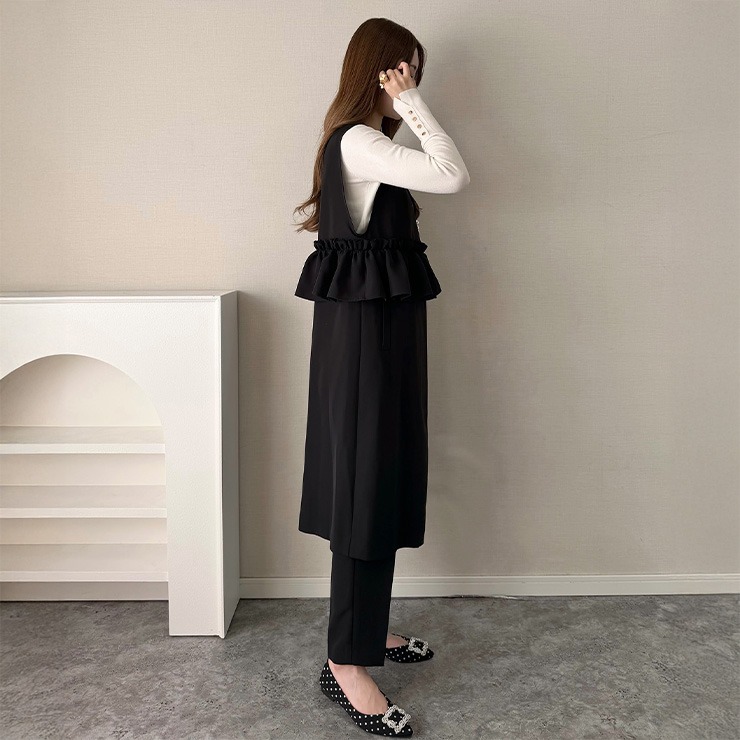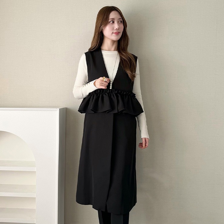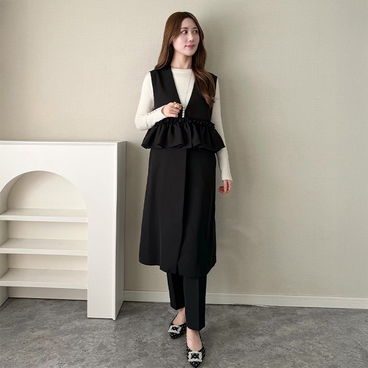 フリルが特徴の大人かわいいロングジレです。