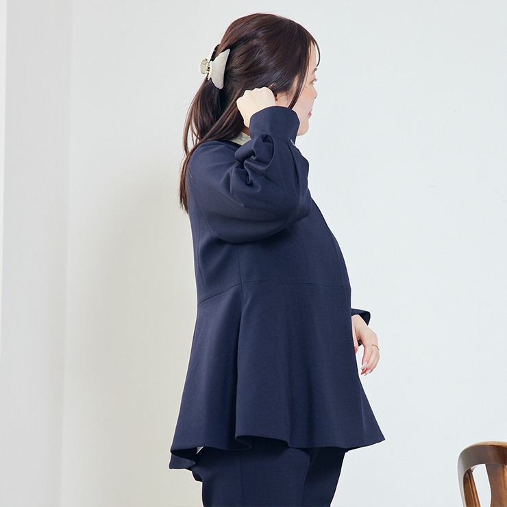 裾のペプラム切替に加え、バルーン袖になっているので可愛らしい印象のジャケットです。