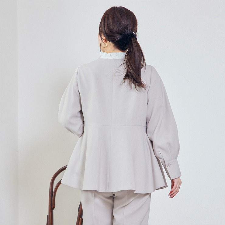 セレモニーやお仕事にぴったりなノーカラーペプラムジャケットです。