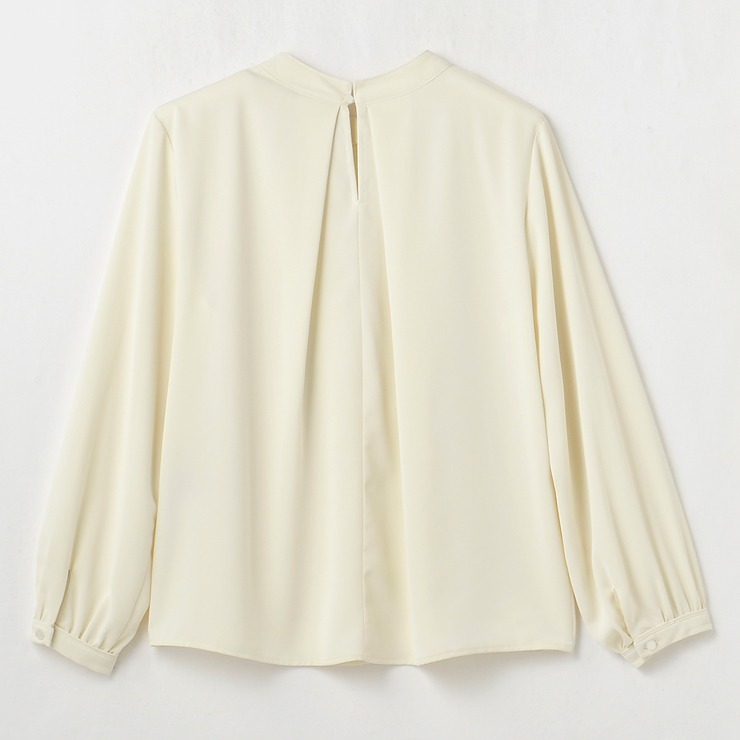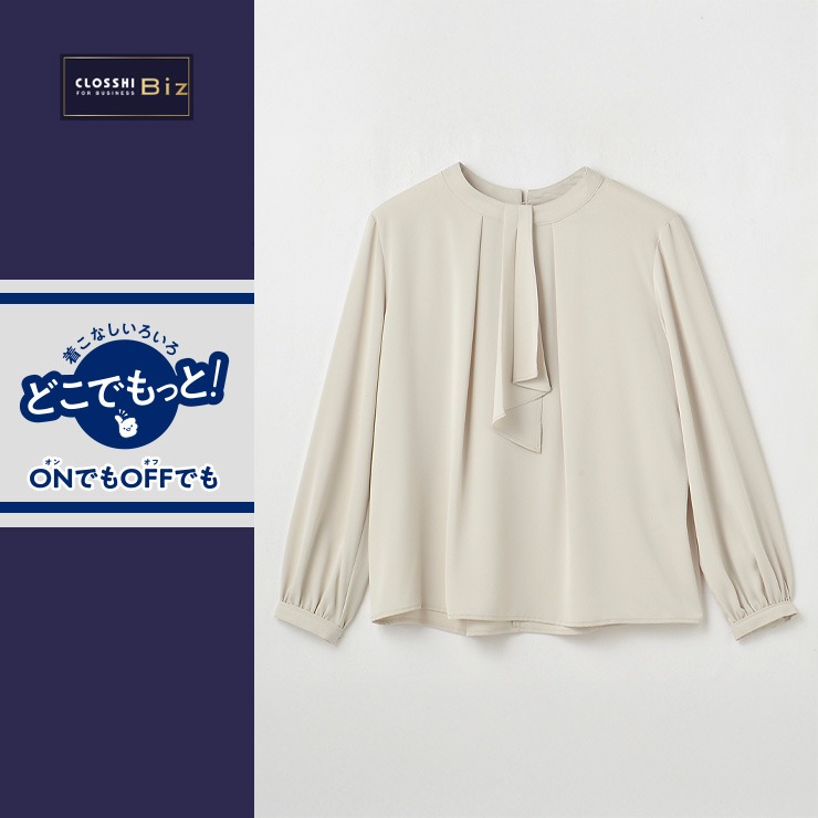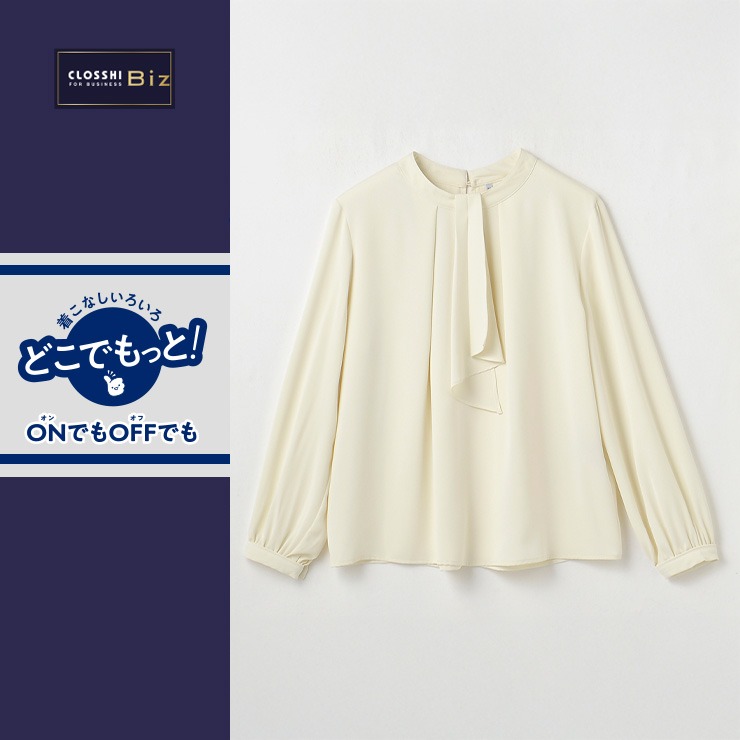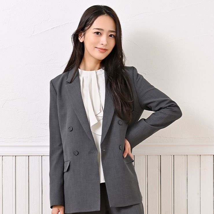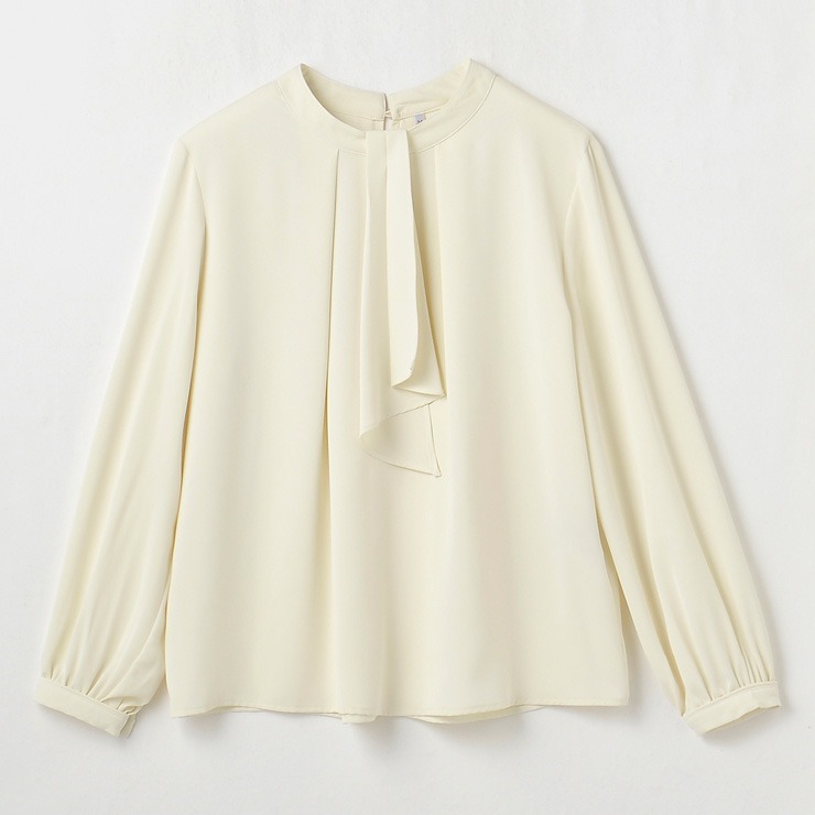 顔まわりが華やかに見えるラッフルデザインでジャケットスタイルに合わせやすく、着回しが自由自在です。