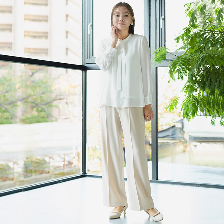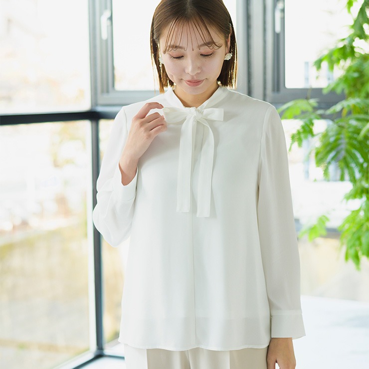 そのまま垂らしてもOK。結んでもOK。のボウタイがポイントです。