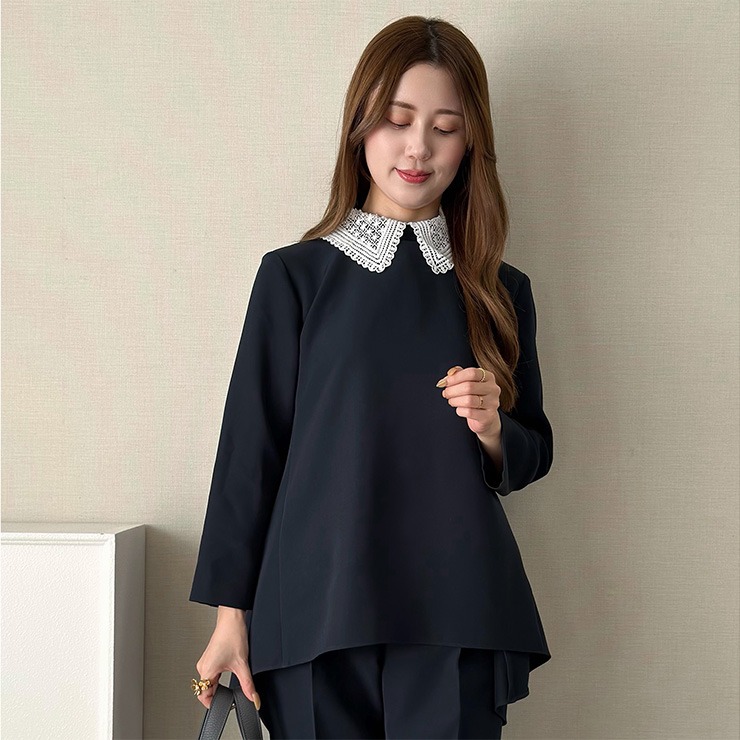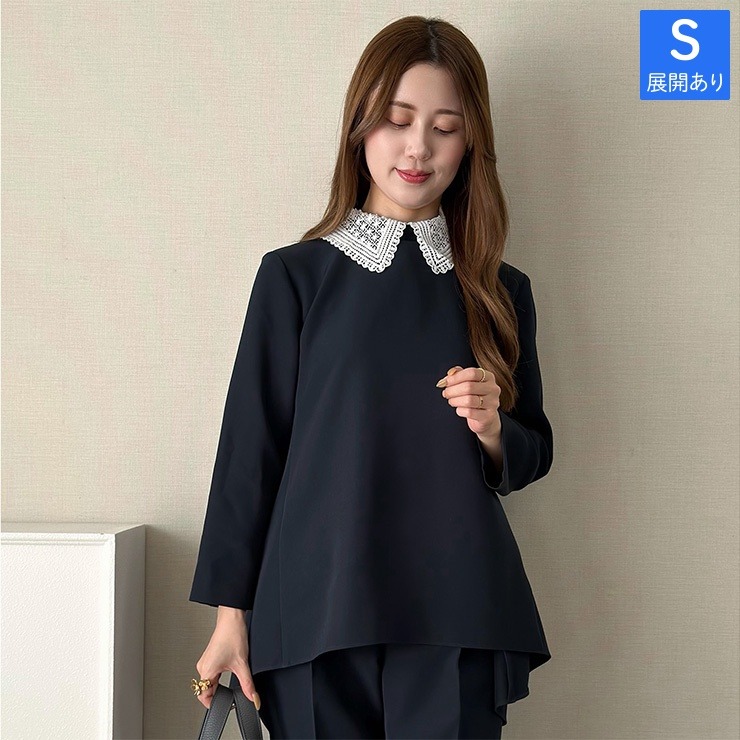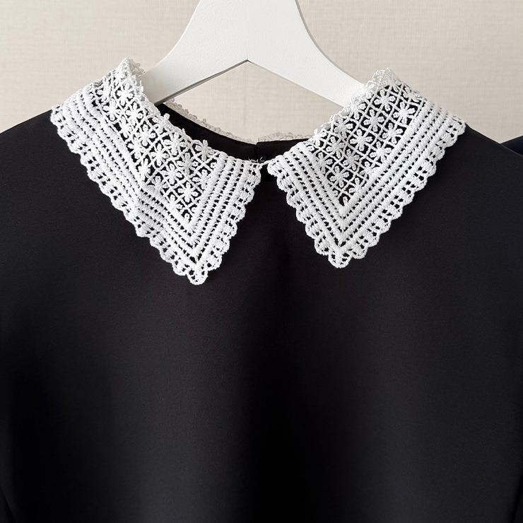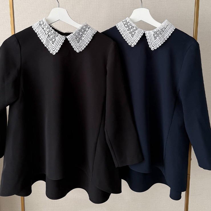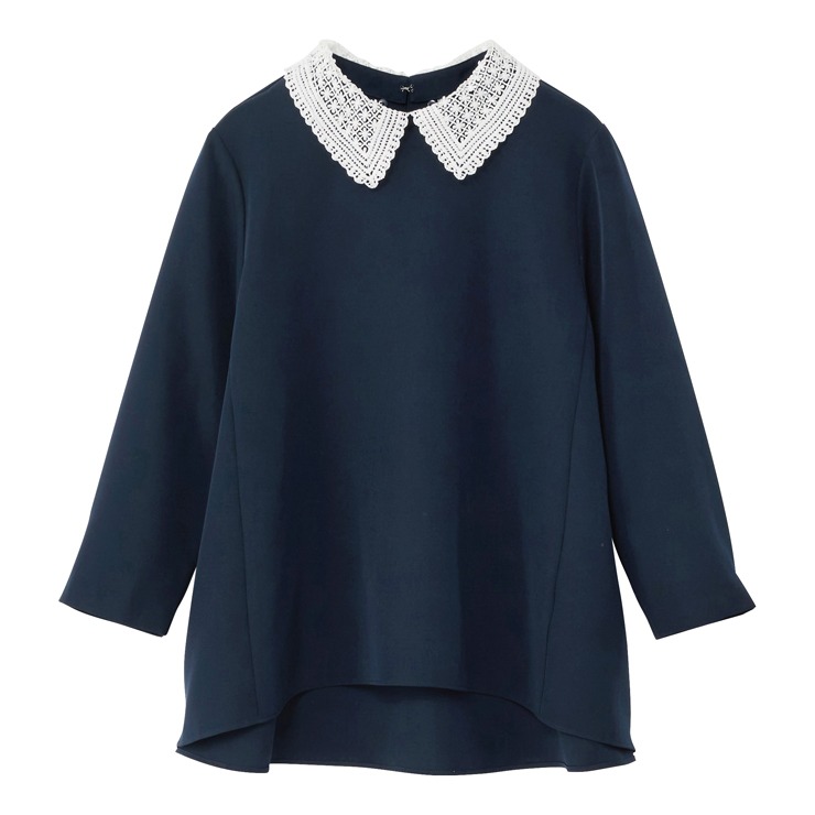 上品で繊細な衿のレースが取り外し可能で2wayのブラウスです。