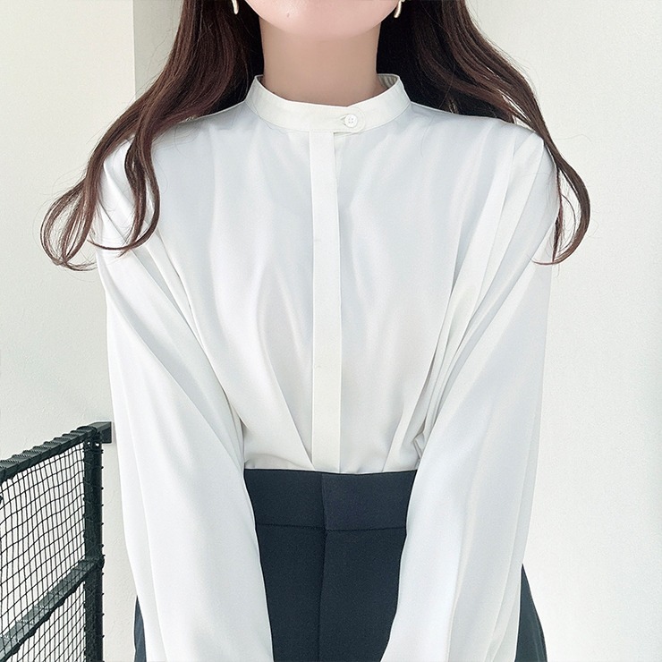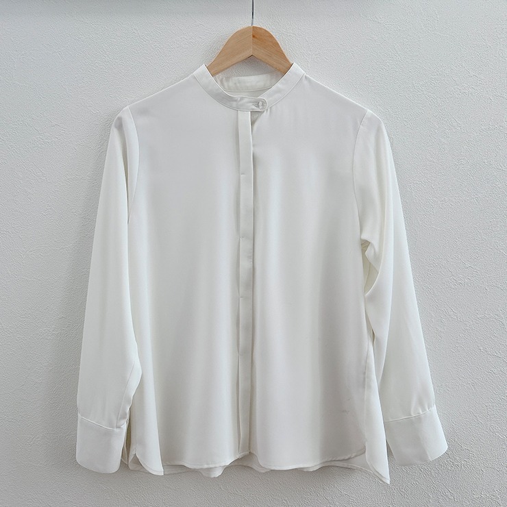 ベーシックなデザインのバンドカラーブラウスです。