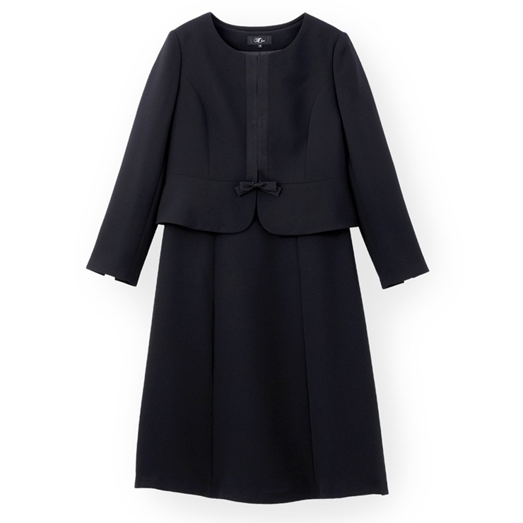 シンプルな中にもデザイン性のある大きいサイズのブラックフォーマルアンサンブルです。