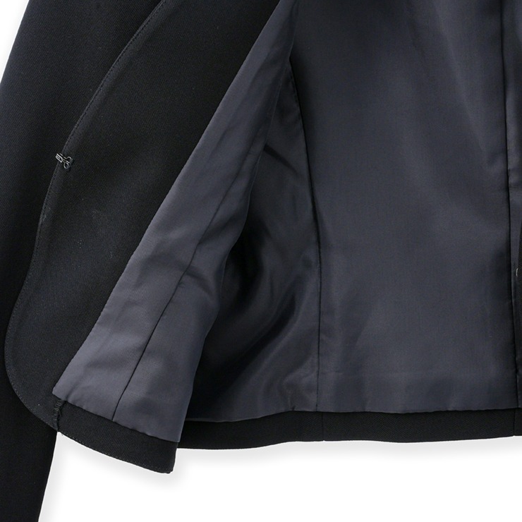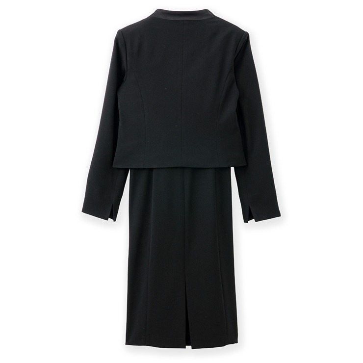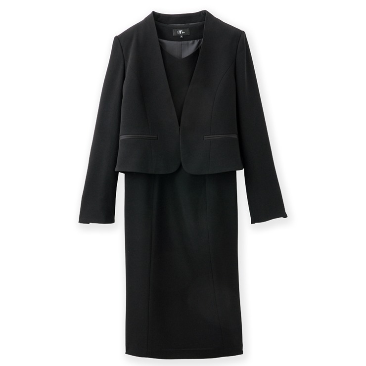 ジャケット、ボレロ、ワンピースのブラックフォーマル3点セットです。 組み合わせ方でオールシーズン着用可能なデザインです。