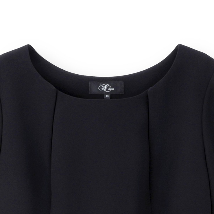 シンプルな中にもデザイン性のある大きいサイズのブラックフォーマルアンサンブルです。