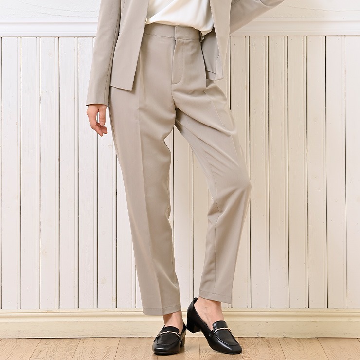 お尻の周りのギャザー感を減らしてスッキリ仕様のテーパードパンツです。