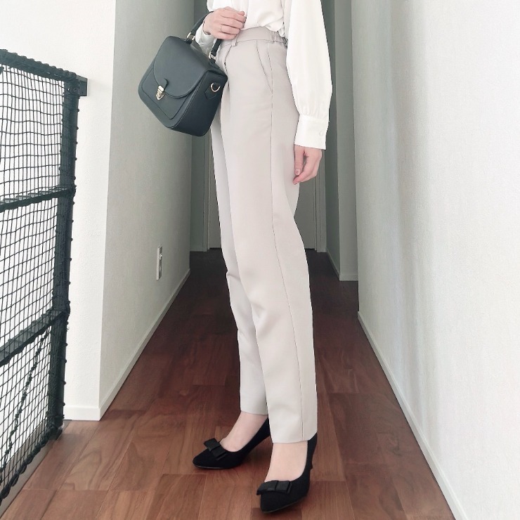 脚をスッキリ、きれいに見せるテーパードパンツです。