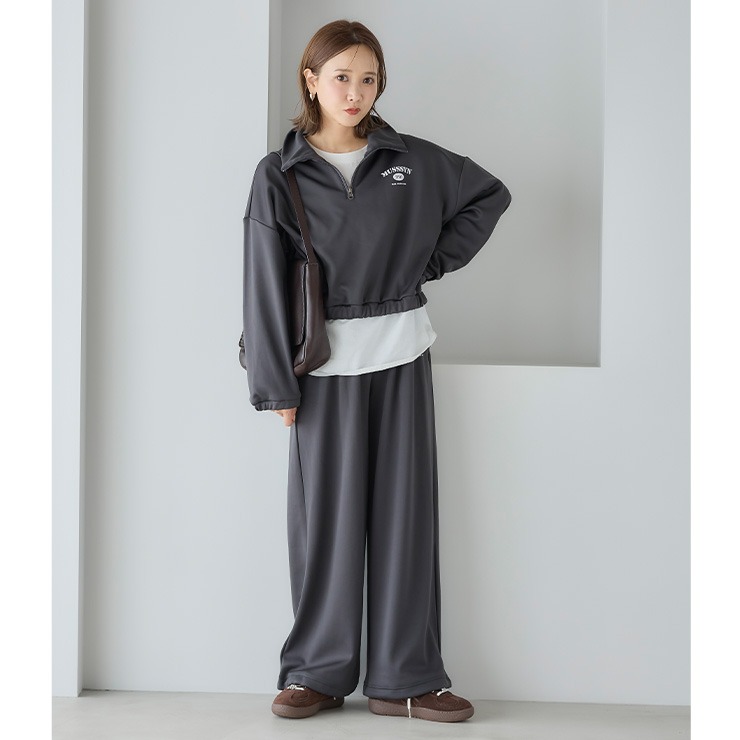 同素材のボトムとのセットアップも楽しめます。
