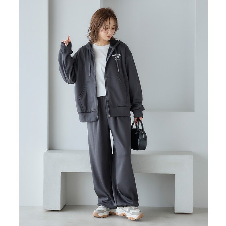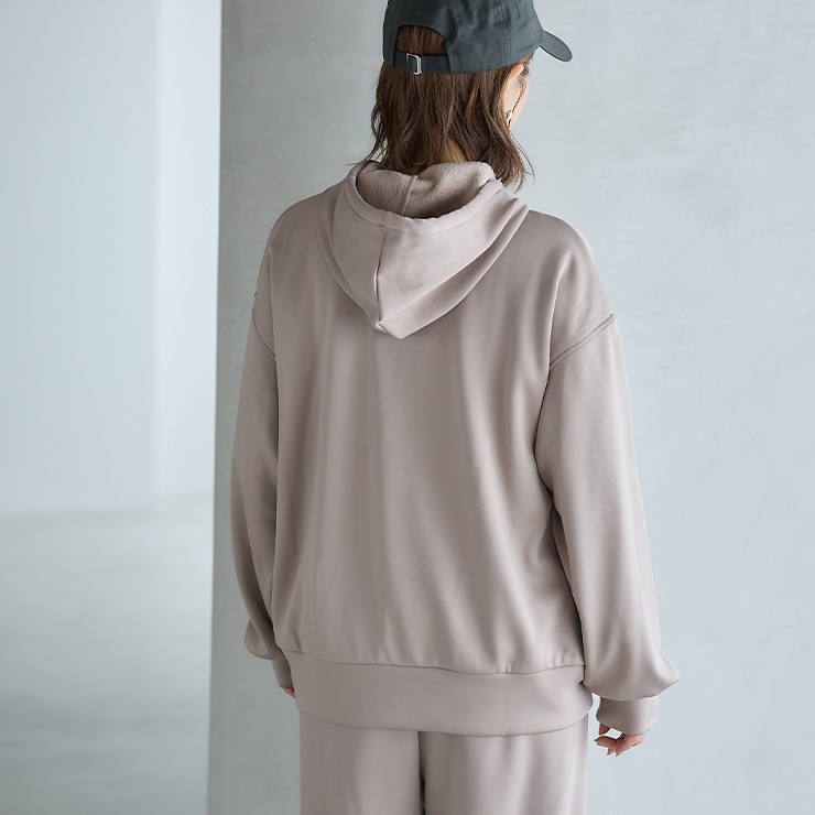 程よいゆったりシルエットのジップパーカ、幅広いコーデに最適。 裏側が起毛素材で暖かく、生地にストレッチ性があるので動きやすい。 今シーズン万能アイテム間違いなし。