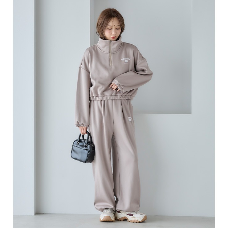 裏側起毛で暖か素材のスポーティなパンツ。 裾のゴム仕様でシルエット調節可能。気分によって変えられます。 シンプルデザインなので色んなコーデ楽しめます。 同素材のトップスとセットアップ可能。