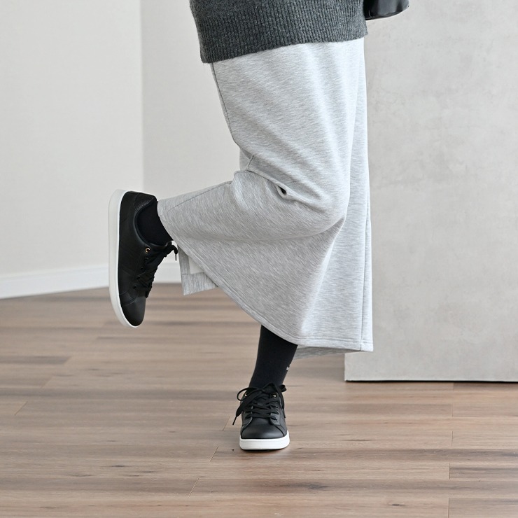 大人気だったナロースカート裏起毛になって再登場!やわらかな肌触りのよい素材を使用。後ろゴム仕様+よく伸びる素材のため着心地らくちん。シンプルなナロースカートでコーディネートしやすい万能アイテム。