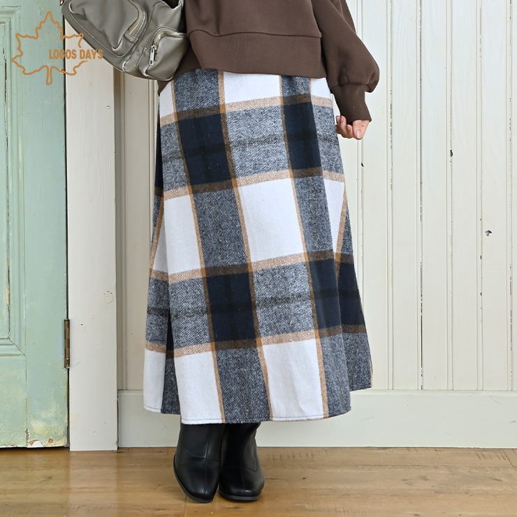 表面の起毛感と大きなチェック柄が見た目にも暖かい印象のAラインスカートです。 ハイウエストから裾に広がるシルエットなので腰回りや太ももをカバー。 両脇にはシームポケット付き。