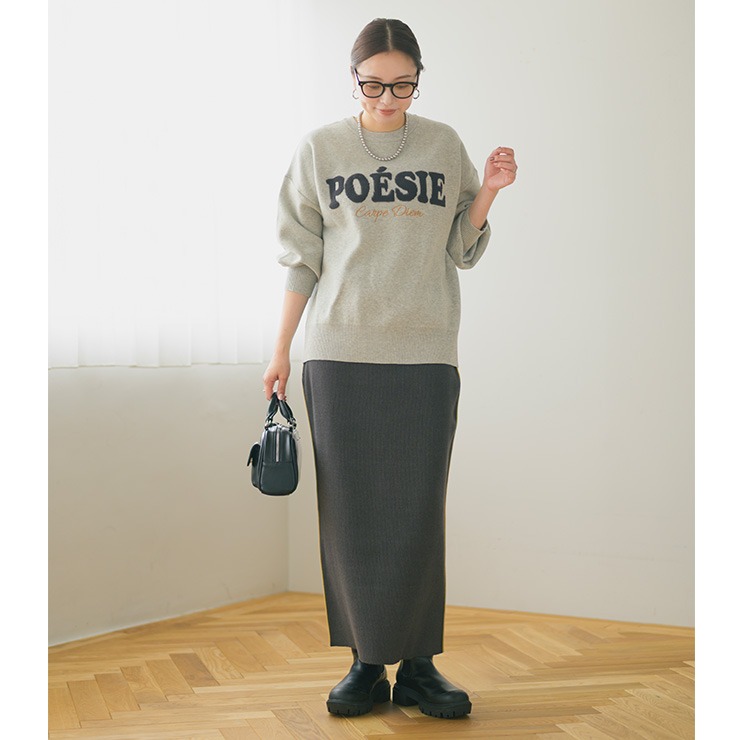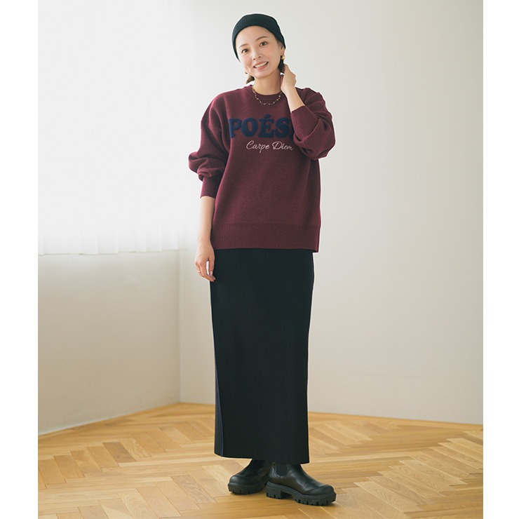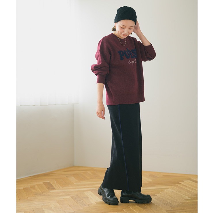 伸縮性のあるリブ編みで着心地が良いのが魅力。