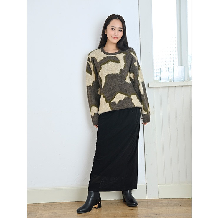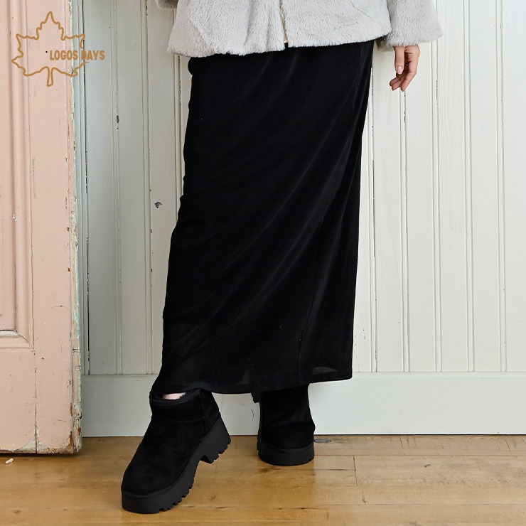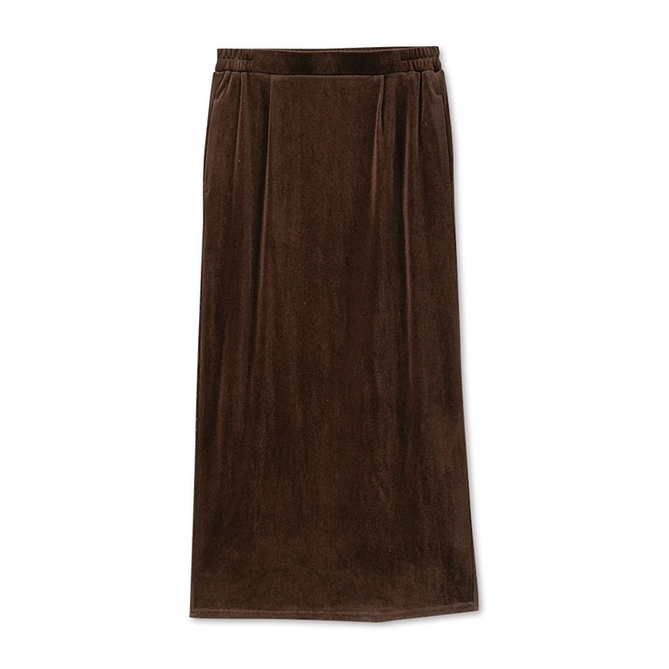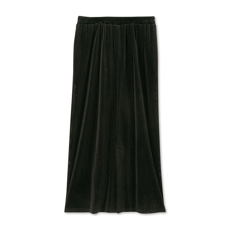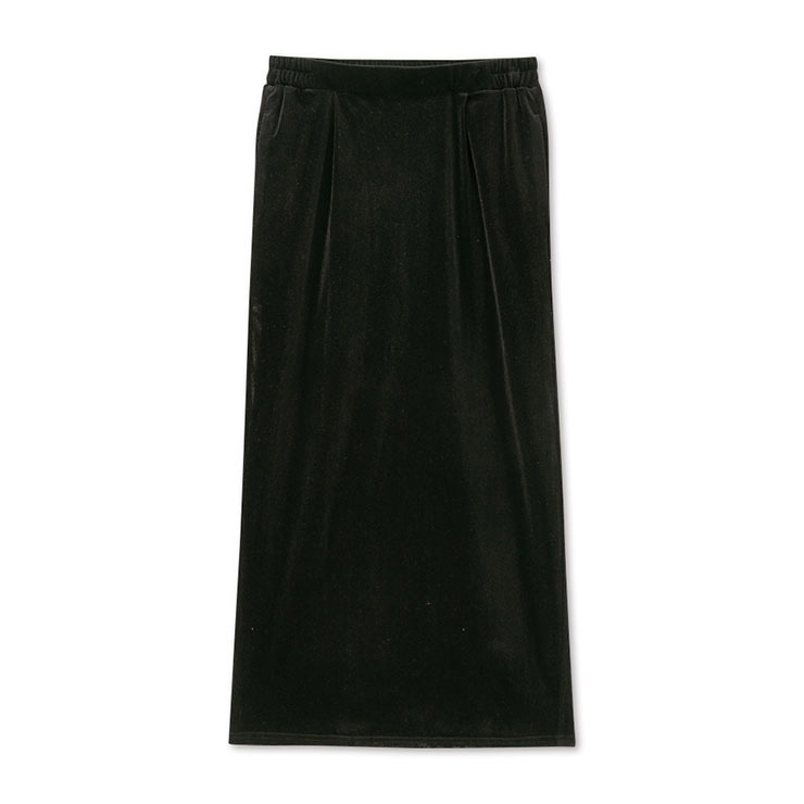 ストレッチ性のあるメッシュタイプのベロアスカート。 ナローシルエットでスタイルアップを叶えます。 ウエストはゴム入りで楽ちん、タック入りでウエスト周りを程よくカバー。 脇には嬉しいポケット付きです。