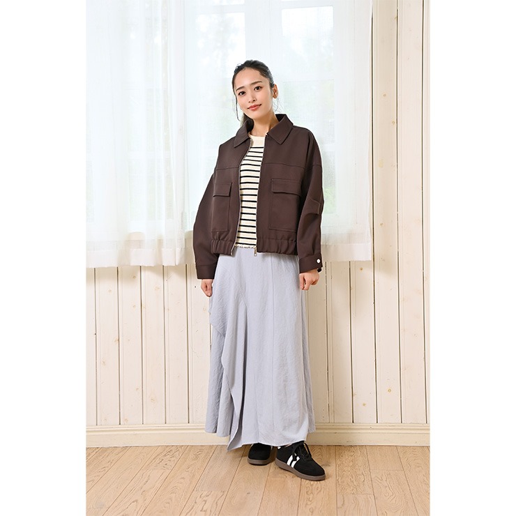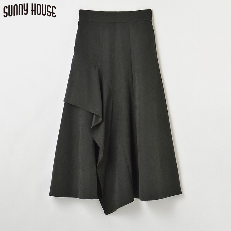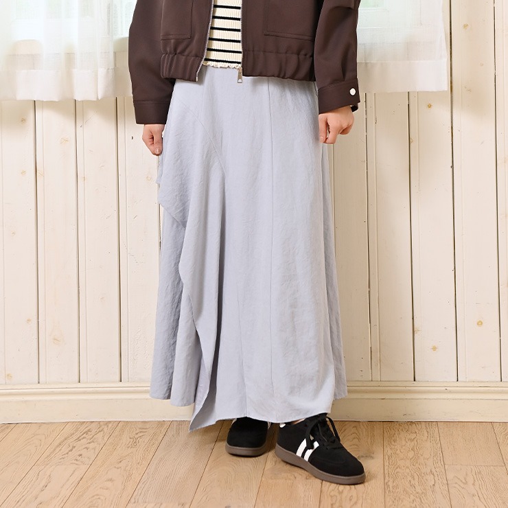 柔らかい素材にフリルを使いボリュームのあるデザインのスカートです。 左右ポケット付なのも嬉しいポイントです◎