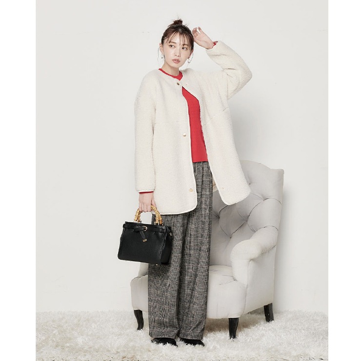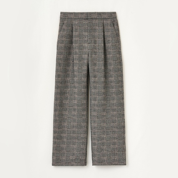 カットソーのジャカード生地を使用しているので、とってもラクな穿き心地。 きちんと見えが叶う美脚パンツ。 すっきりワイドシルエットなので、どんなトップスとも相性抜群!
