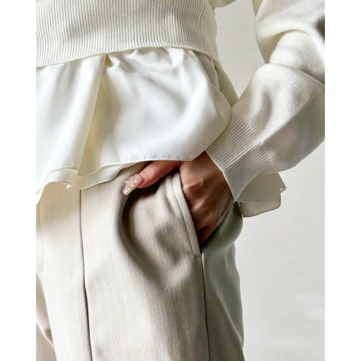 フロントは綺麗目見え、後ろはゴム仕様で楽ちんに着て頂けます。