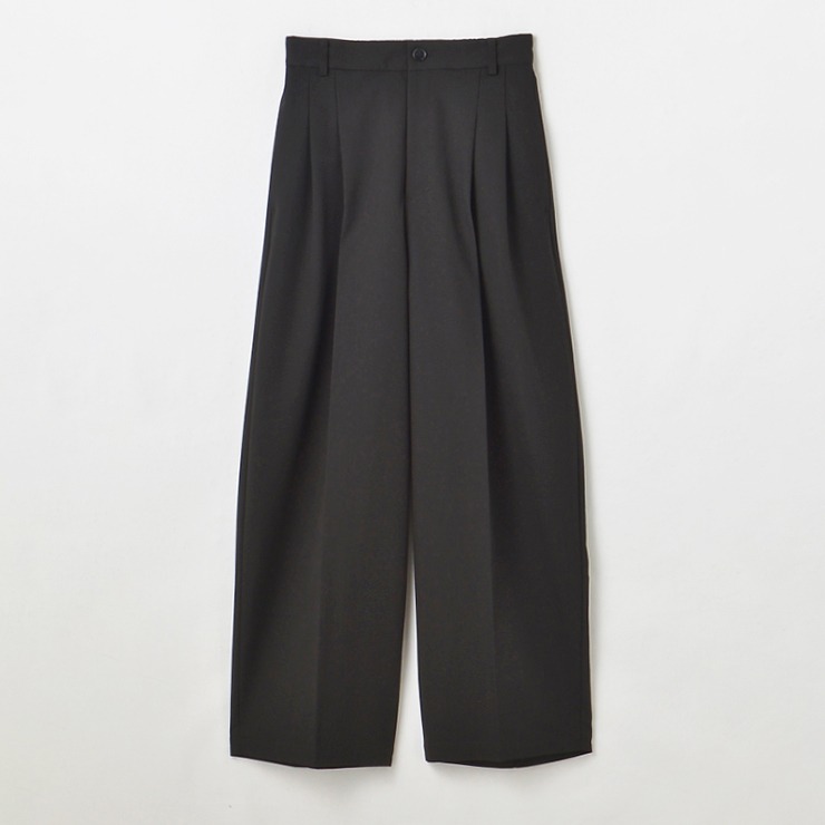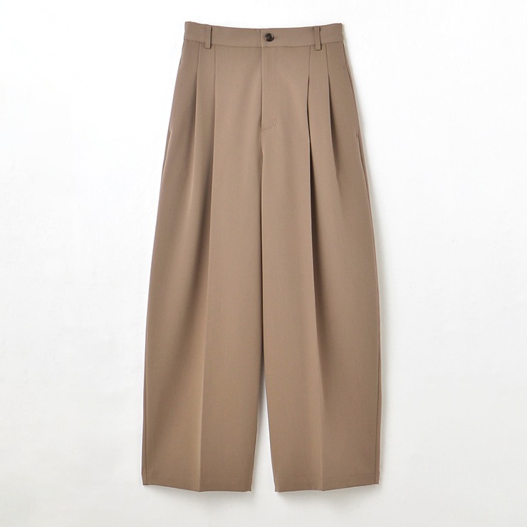 ストレッチのあるツイル素材のワイドコクーンパンツです。ワイドシルエットですが裾に向かってやや細くし、コクーン感を出すようこだわりました。前ジップ付きですが後ろウエストにゴムギャザーを寄せることによってはき心地がラクです。左右ポケット付き。