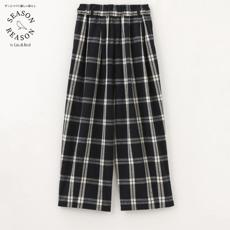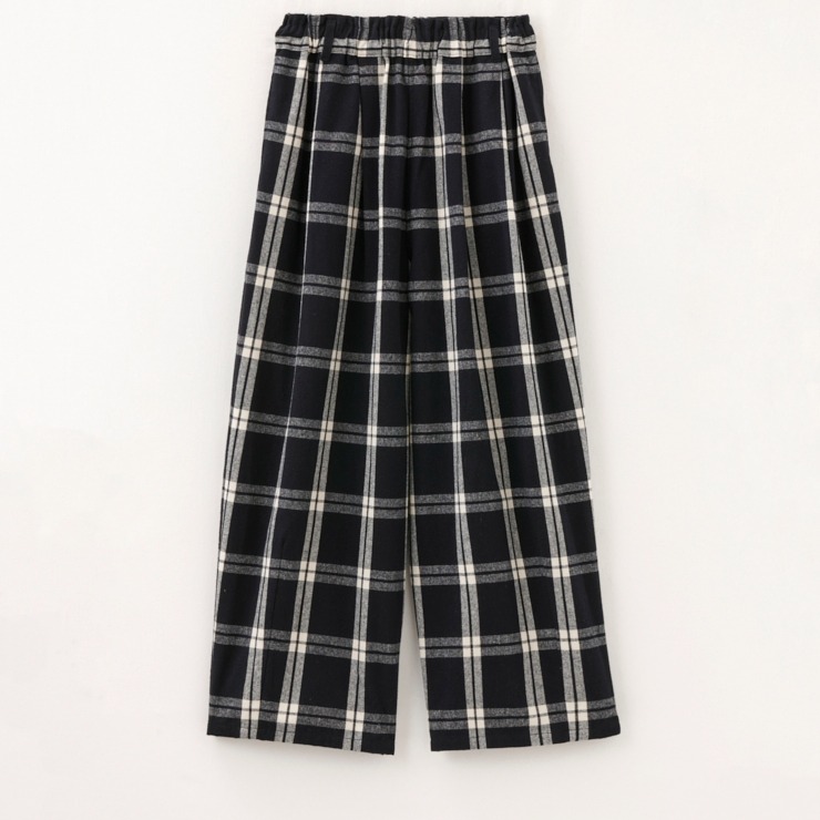 大きめなチェックが目をひくコクーンシルエットのパンツ。