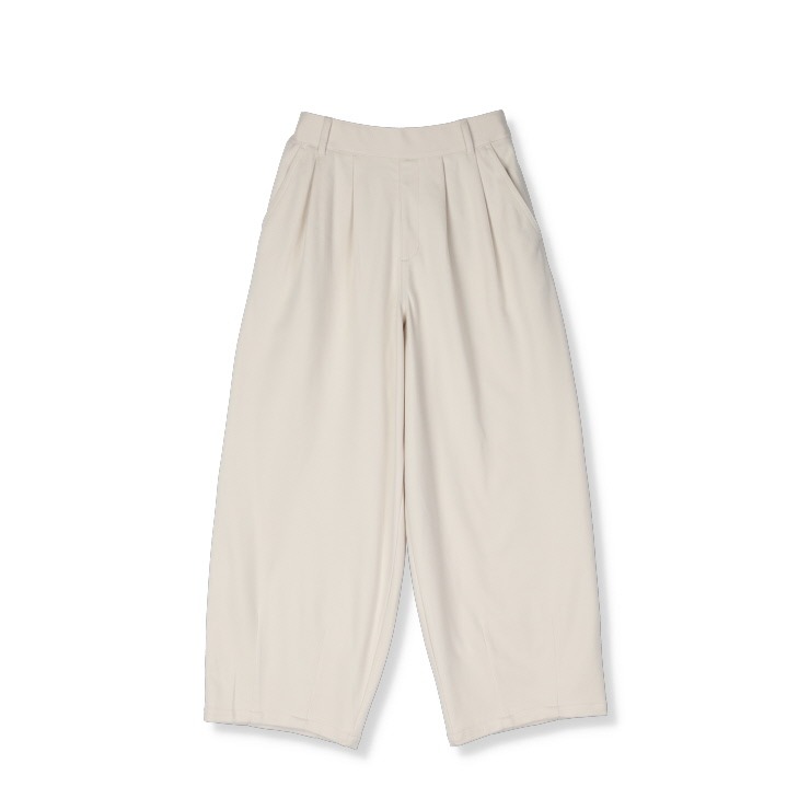 温かみのある表起毛加工を施したカットソー素材のコクーンパンツです。 たっぷりとしたボリューム感が可愛いコクーンパンツ。 裾にもダーツを入れて丸みのあるシルエットを出しています。 ウエストはゴム仕様なので着脱がラク。 後ろ身頃にもポケット付きでお尻のシルエットをカバーしてくれます。