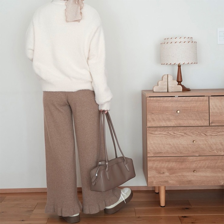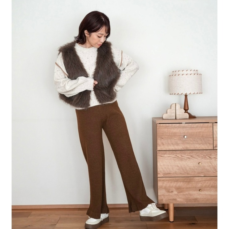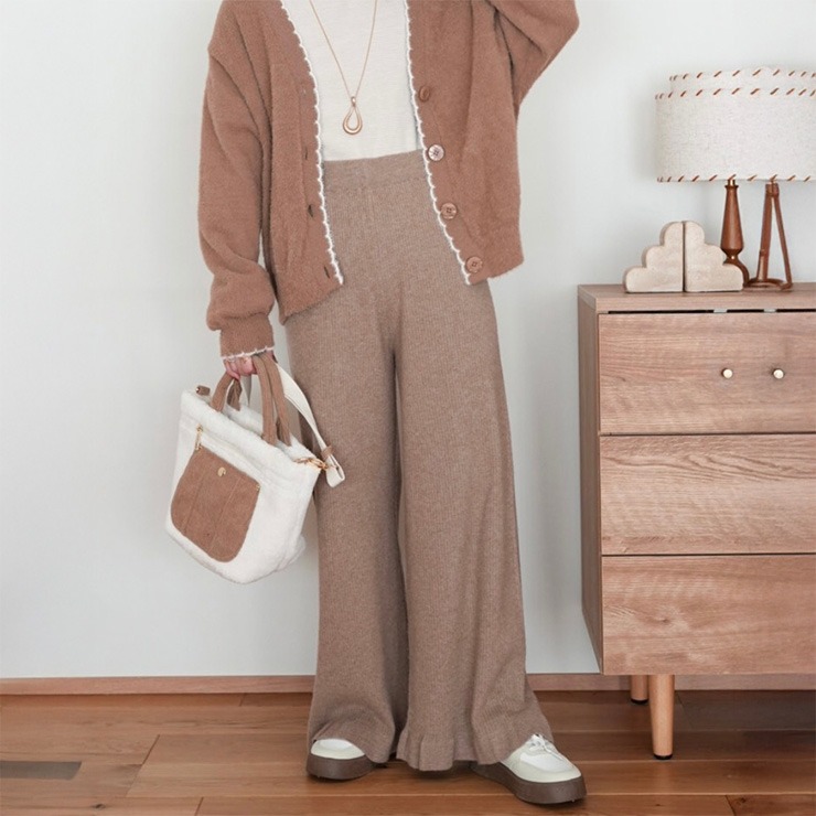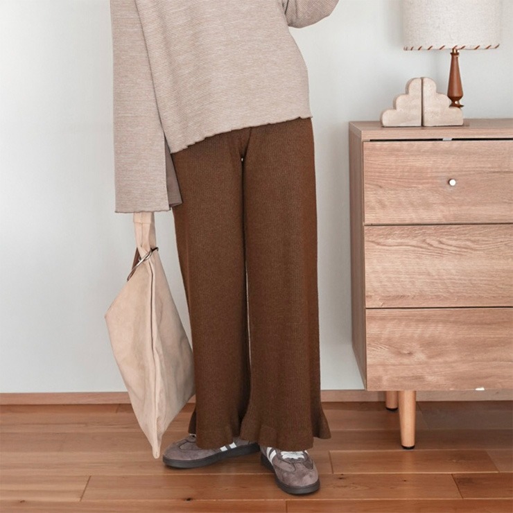 柔らかく着心地の良いもっちりとしたニットを使用したリブニットパンツ。