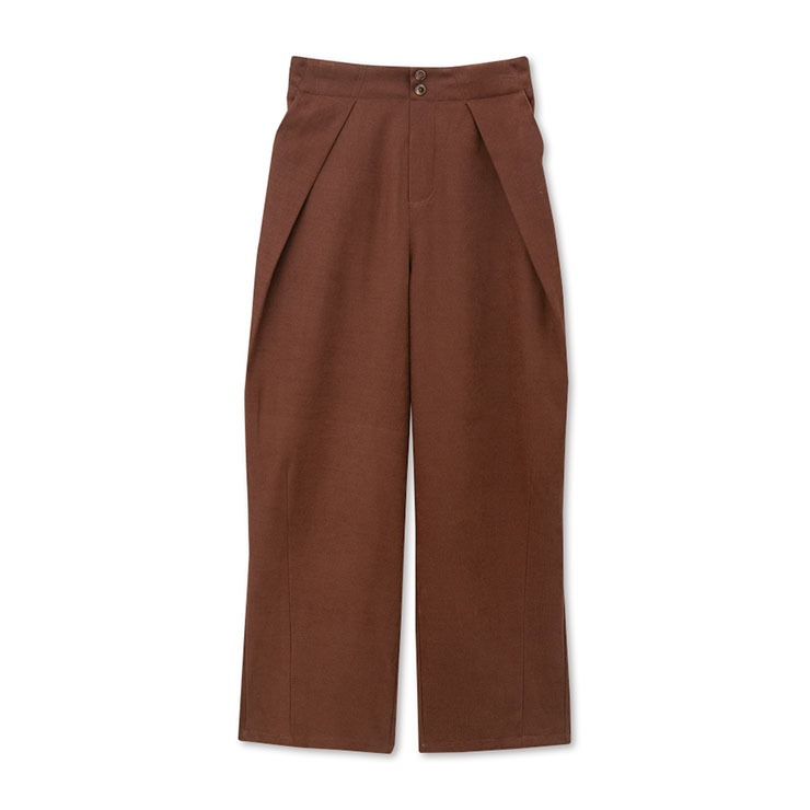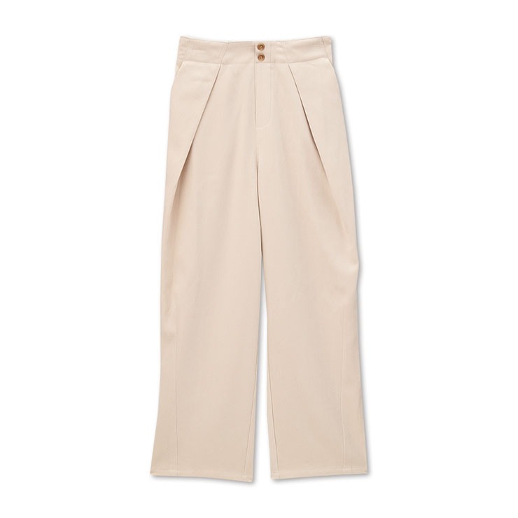 両脇から重なりのあるタックデザインが特徴のカーブパンツです。