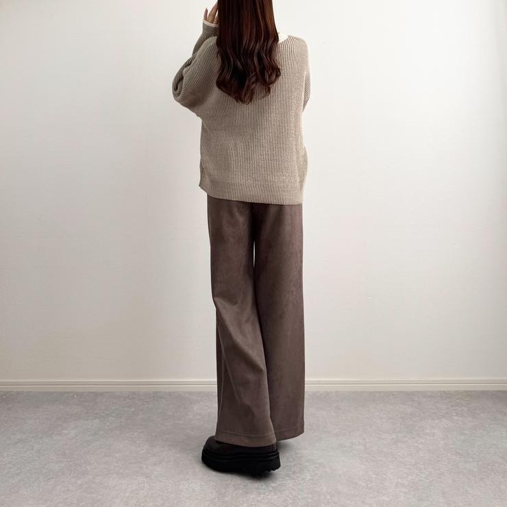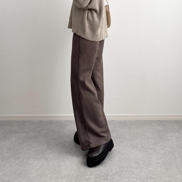 微起毛素材で秋のムードを引き立てるカットソーフレアパンツ。肌触り・肌馴染みが良く、ストレッチのある素材なので穿き心地がラク。ウエストゴムなので着脱もラクです。フレアシルエットで脚長みえするデザインにもこだわりました。左右ポケット付き。