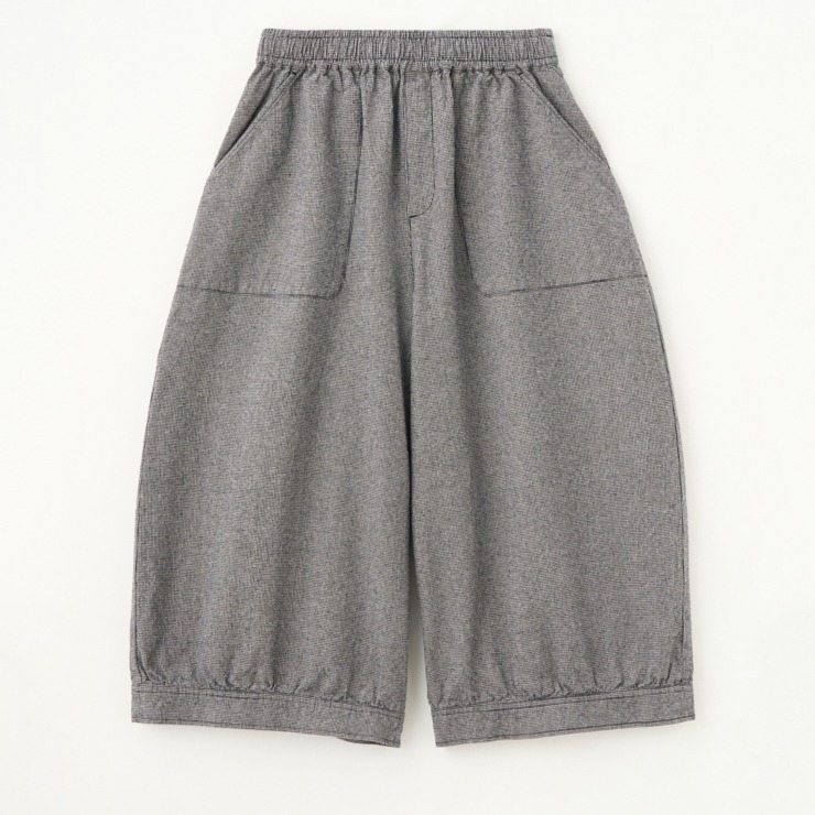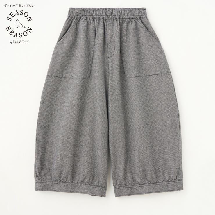 綿麻素材と千鳥柄でナチュラルな印象のコクーンパンツです。
