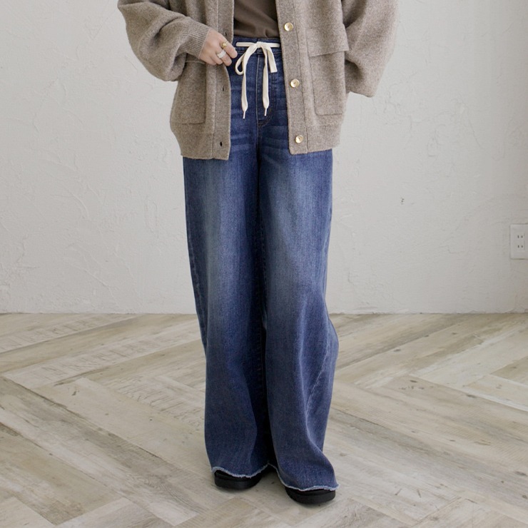 インフルエンサー陽さん、コラボ商品が登場!裏面が暖かく肌触りの良い裏起毛デニムを使用したバギーパンツ。 ウエストゴムのイージーな穿き心地でリラックスして着用頂けます。 ウエスト内側についているドロストリボンはコーディネートに合わせて、表出しも内側インも。