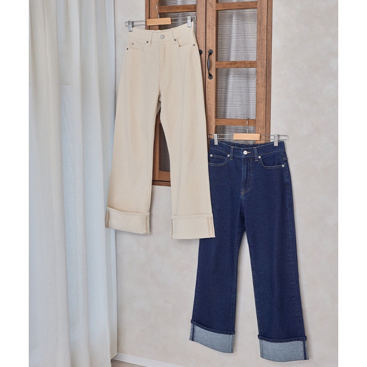 インフルエンサーyumiさん×しまデニのコラボ商品が登場!ミドルウエストでクラシカルなストレートシルエット。
