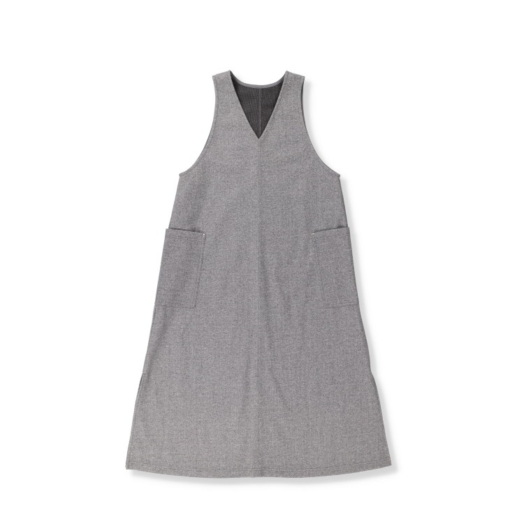 インナー次第で着回しの効く大人ワンピース! すとんとしたシルエットですが、身幅はゆったりとゆとりがあるので楽に着用可能です。 深めのVネック開きで襟もとをすっきり仕上げ、カットソーやブラウスとレイヤードしやすいデザインになっています。