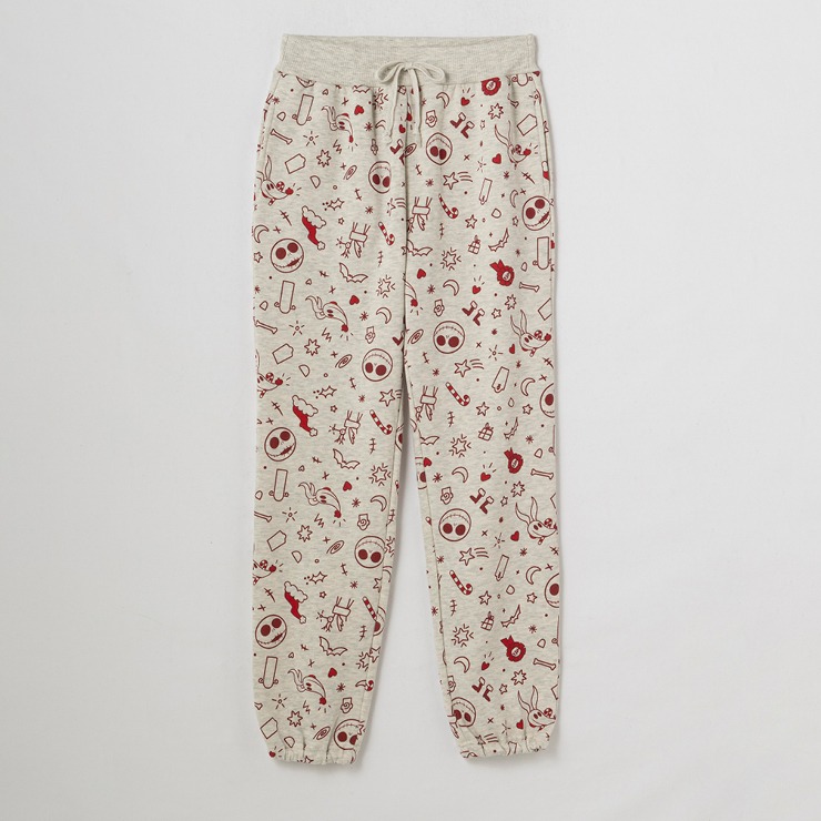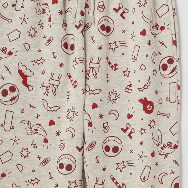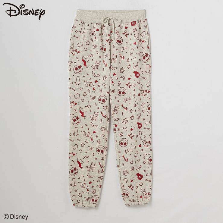 Disney「ナイトメアー・ビフォア・クリスマス」総柄プリントデザインの裏起毛パンツです。