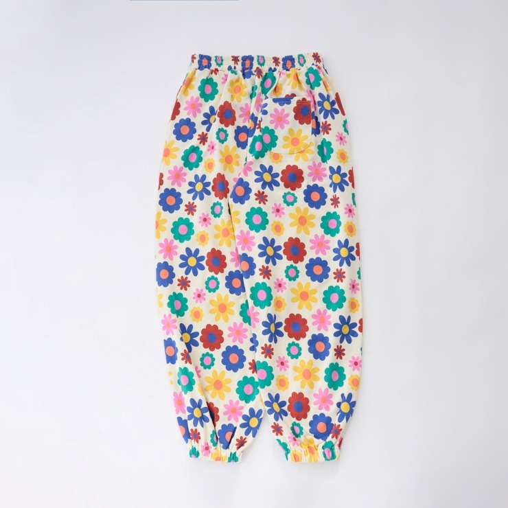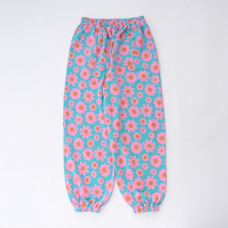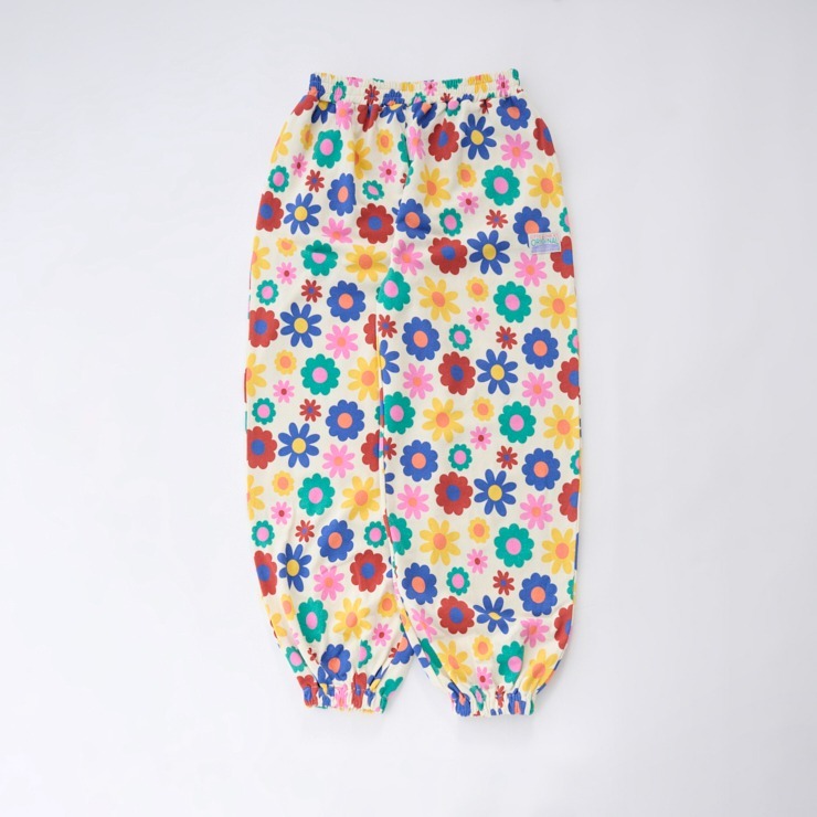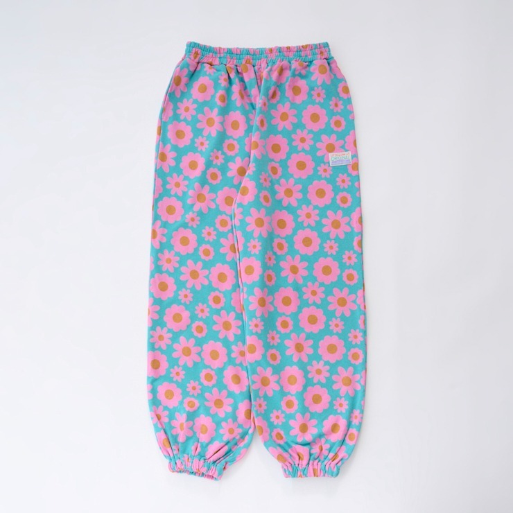 カラフルな総柄プリントがかわいい、裏毛素材のカットパンツです。