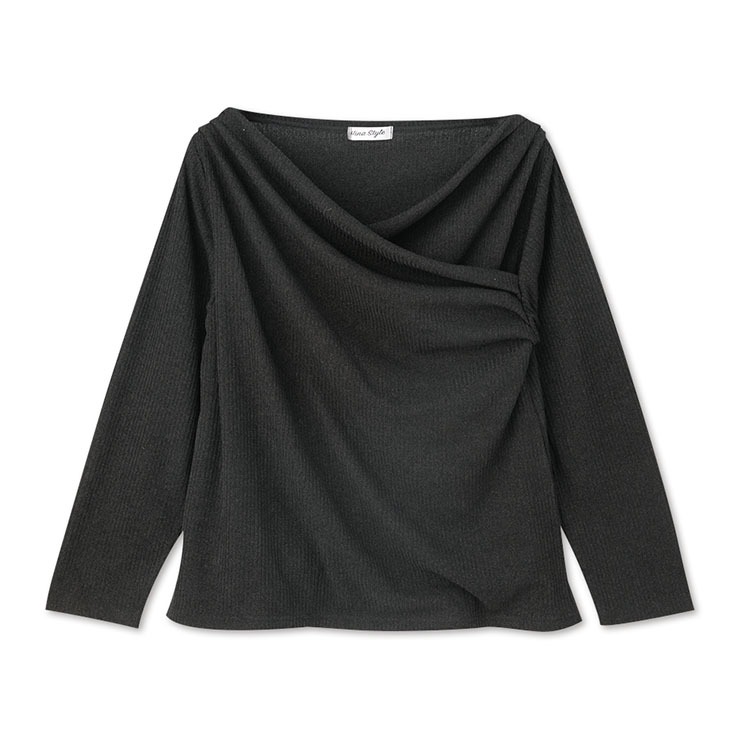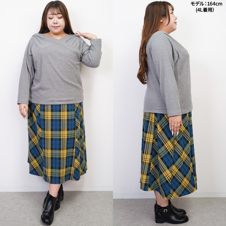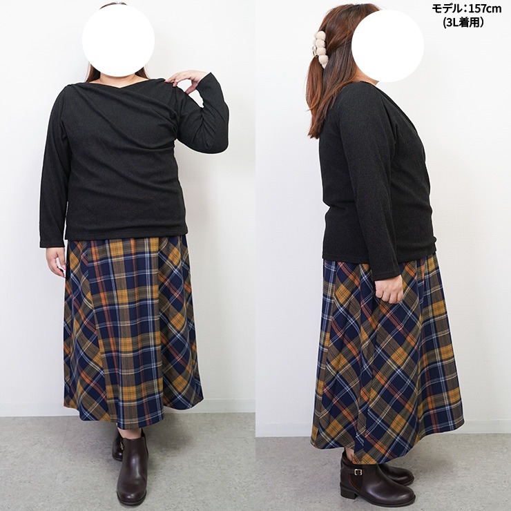リブの編地ですっきり縦見え、裾スリットでお腹回り安心です!