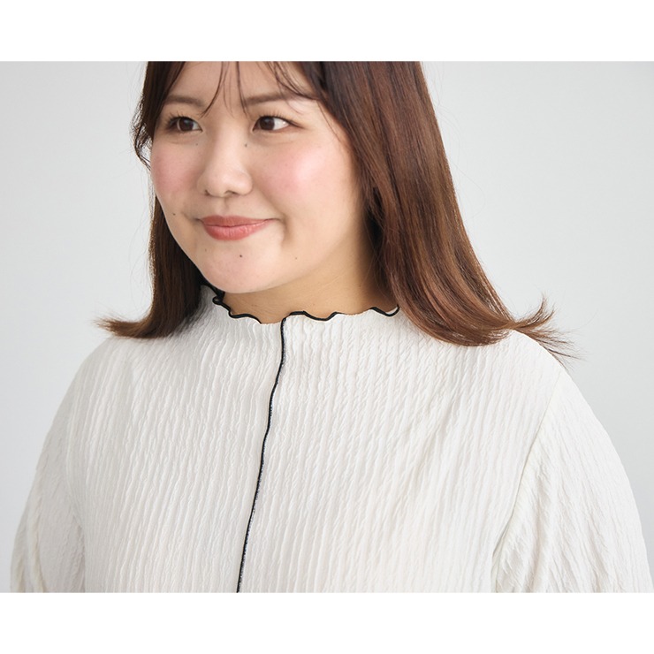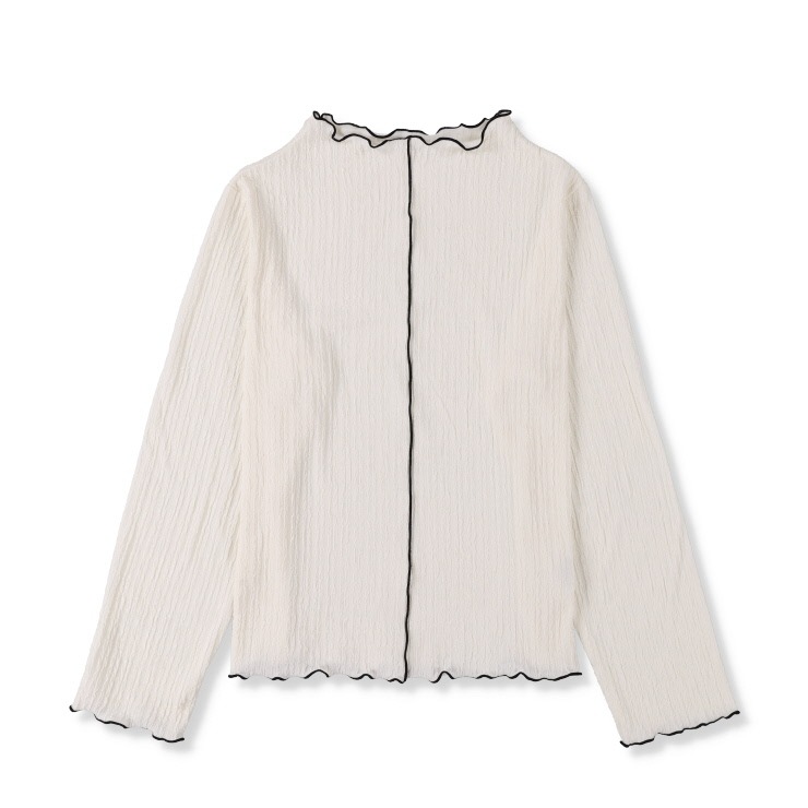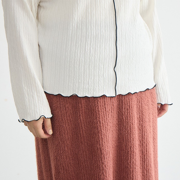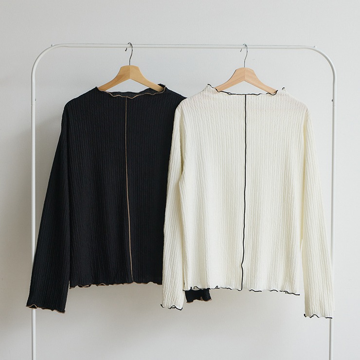 配色メローステッチもデザインアクセントで一枚で着ても◎