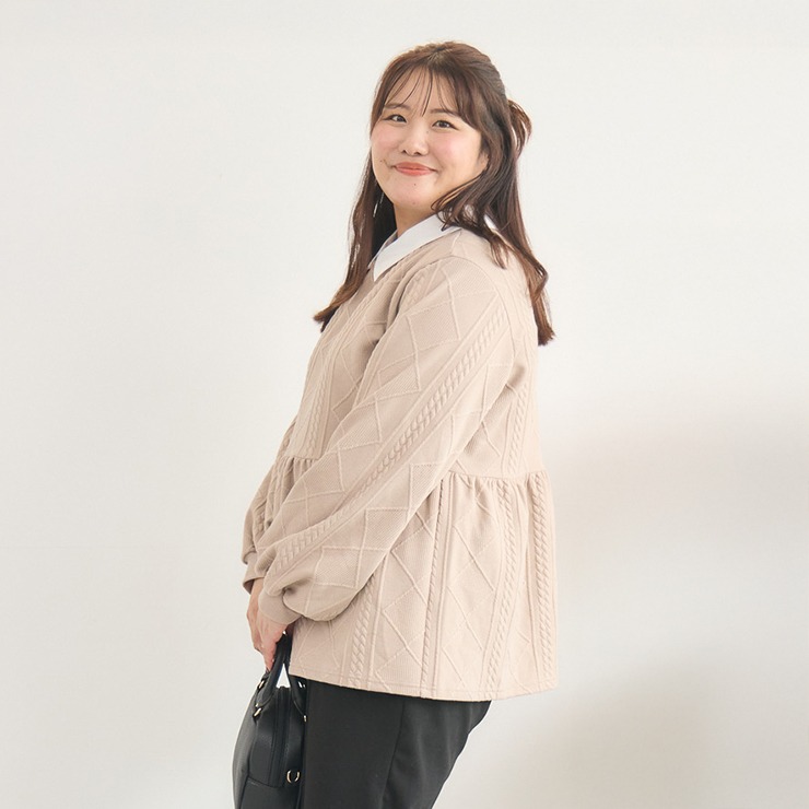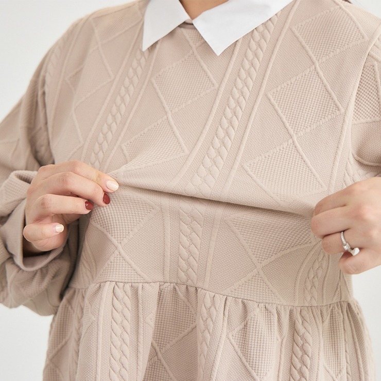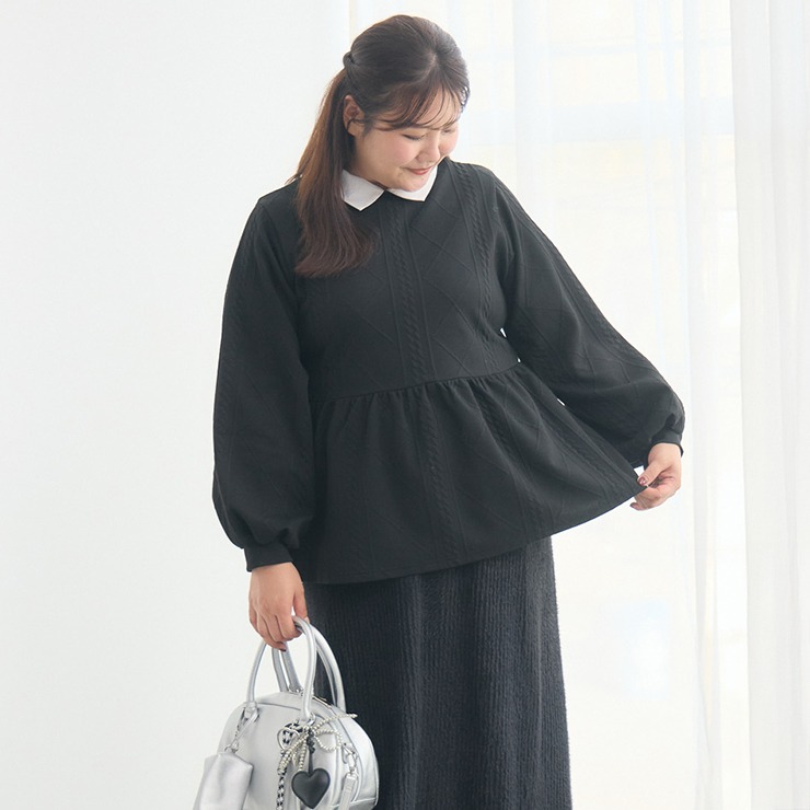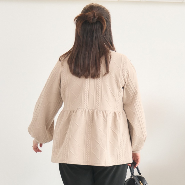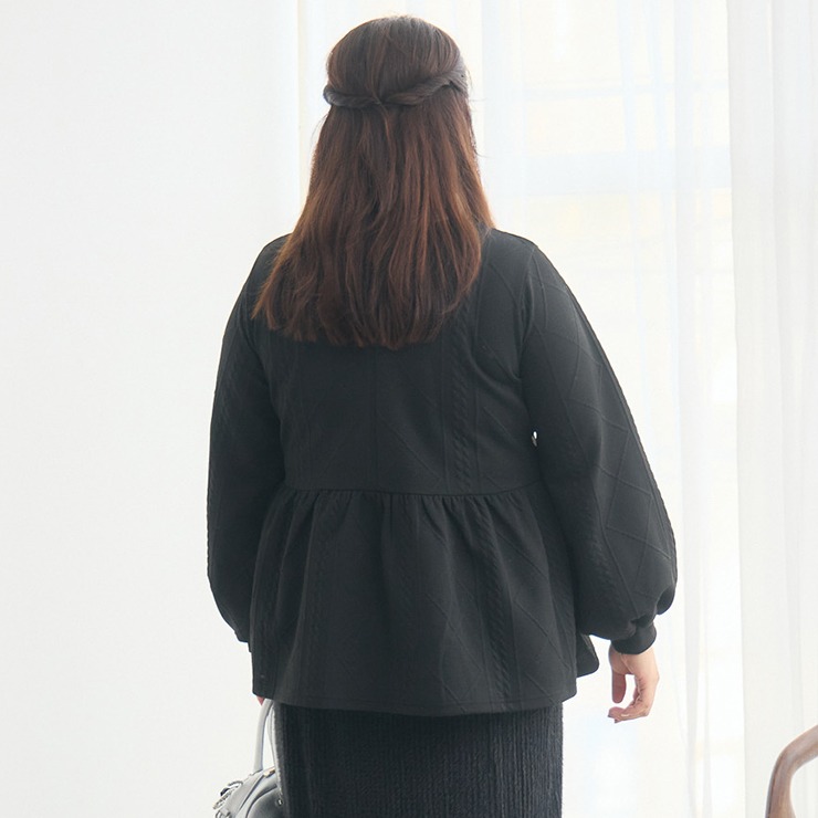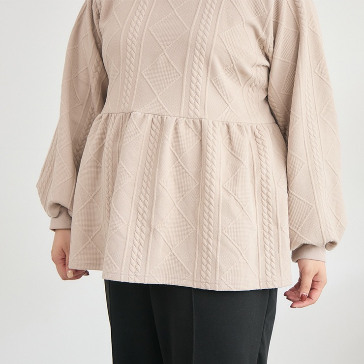 表面感のある膨れジャガード素材のペプラムシルエットのプルオーバーです。
