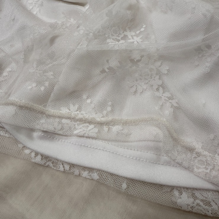 繊細なレースを使い、袖のボリュームやハンドカバーなどを付けてオリジナルに溢れた1枚になっています。