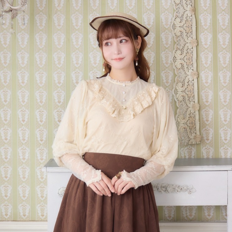 レディース パフスリーブレースプルオーバー(愛野えり)