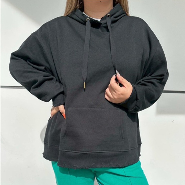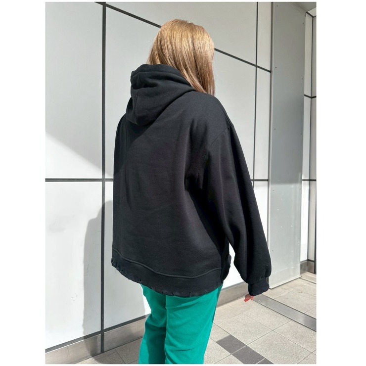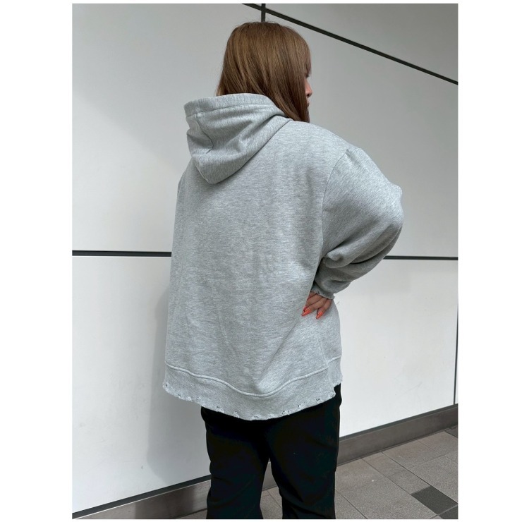 ラフに着られるビッグシルエットのパーカに、クラッシュ加工でこなれ感をプラス。