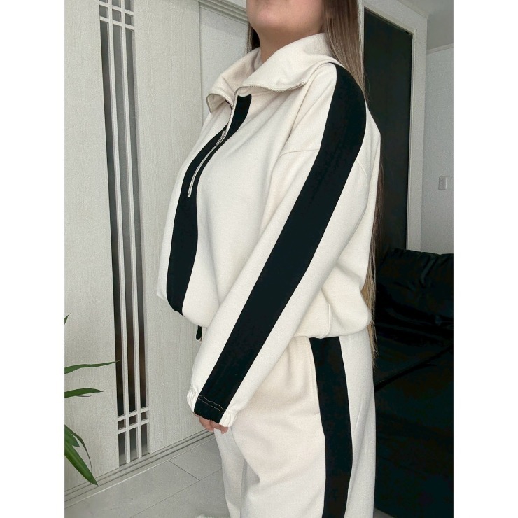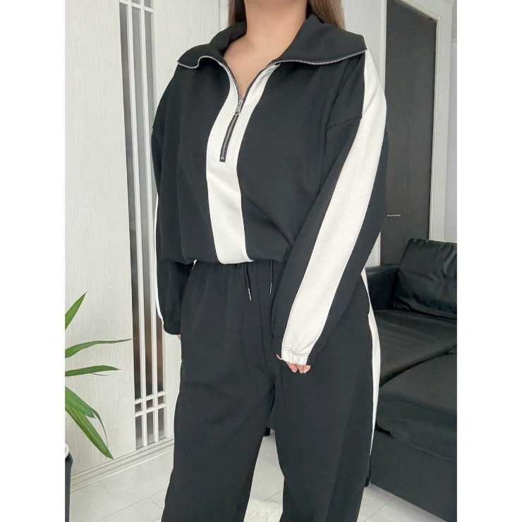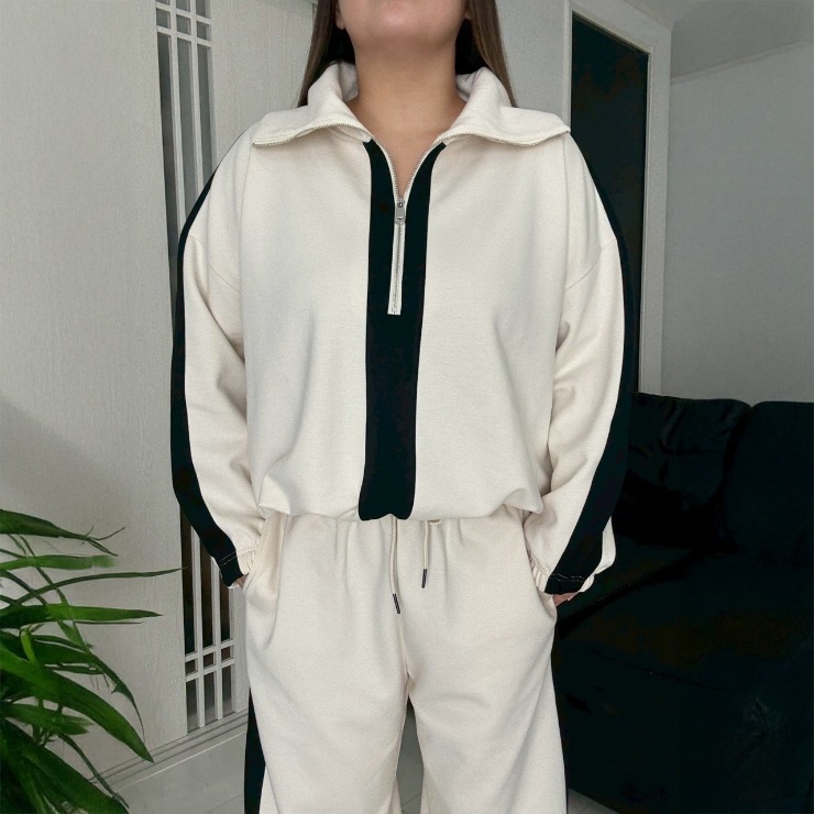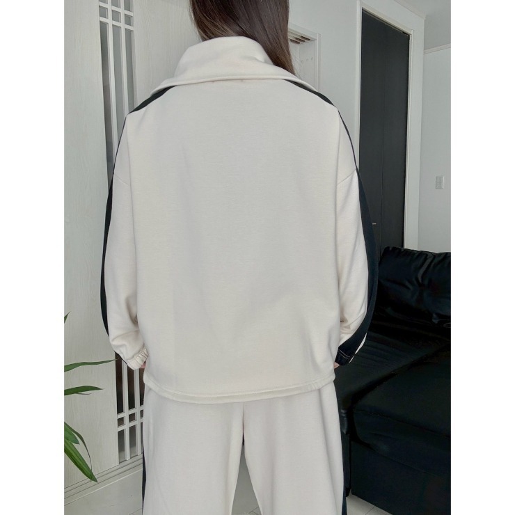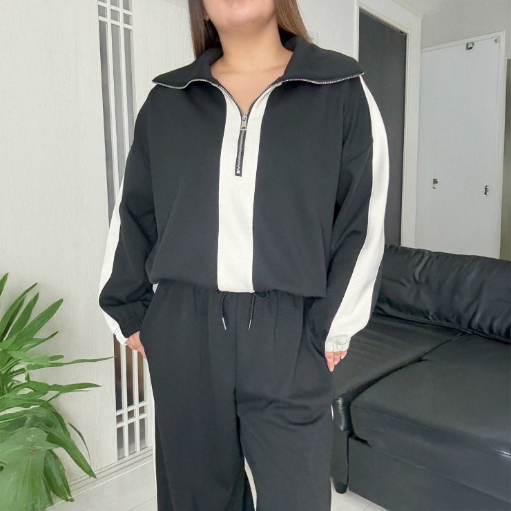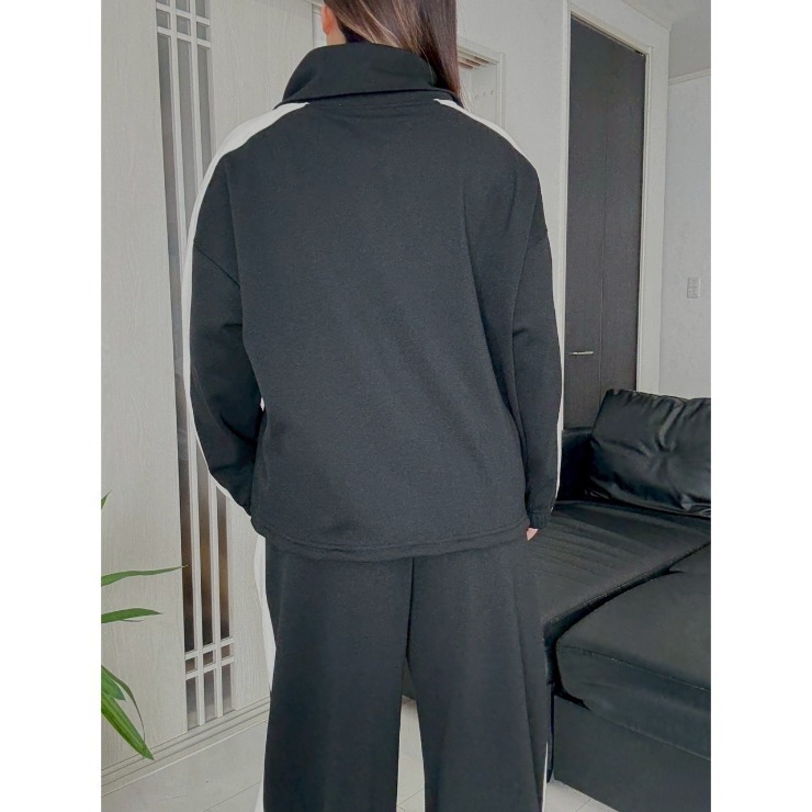 同素材のラインパンツと合わせれば、トレンド感のあるセットアップスタイルも楽しめます。