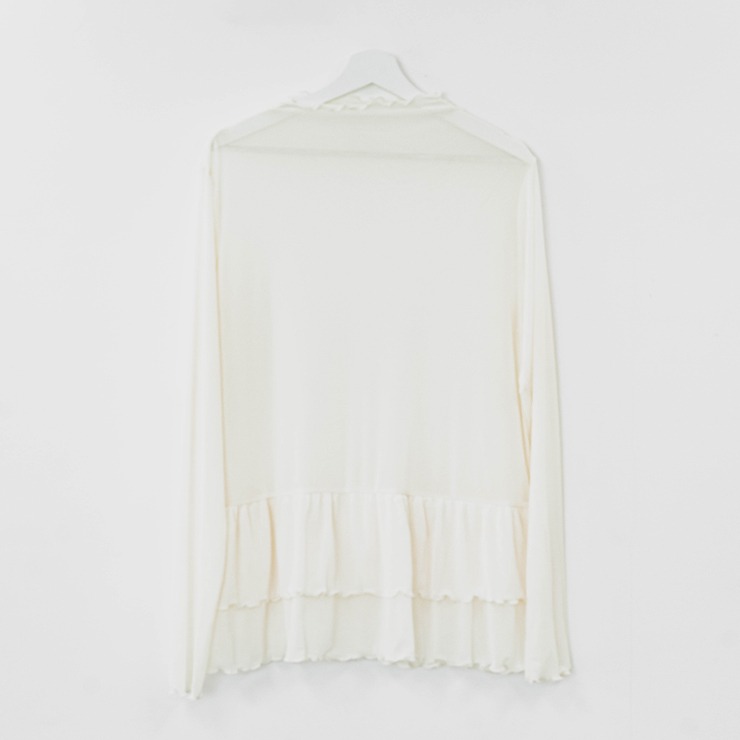 裾のティアードデザインがフェミニンな印象を演出し、シンプルながらも華やかに見える一枚。